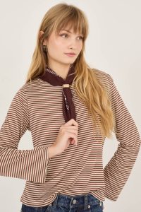 • T-shirt a righe in viscosa e lino