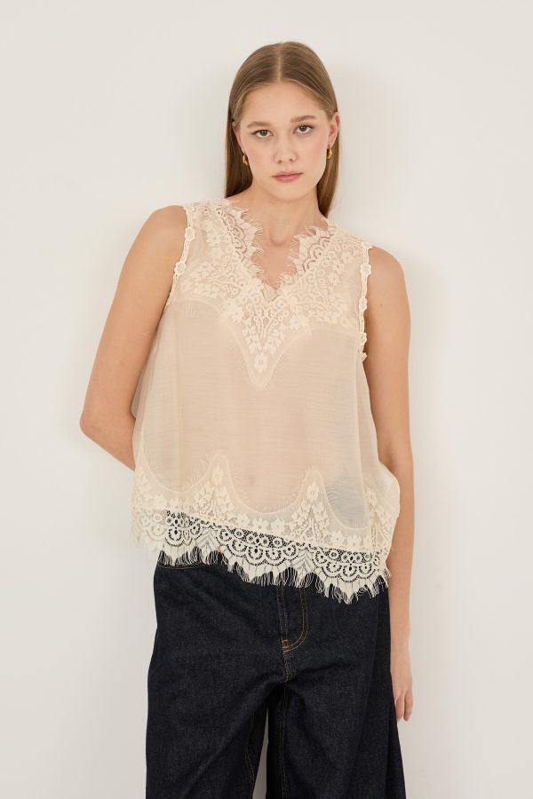 Top in lyocell con inserti pizzo