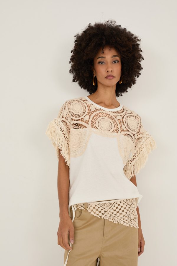T-shirt con inserto macrame’