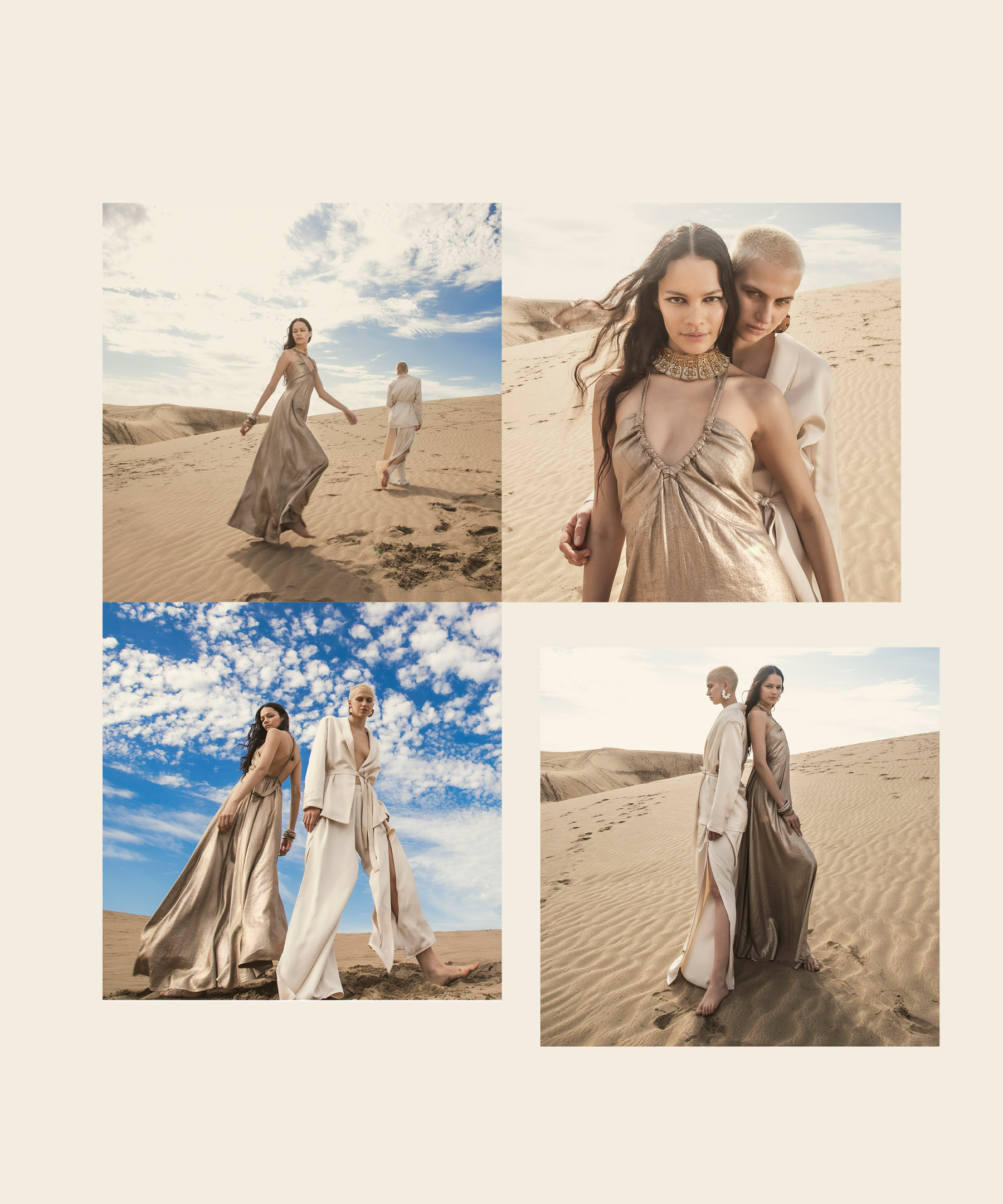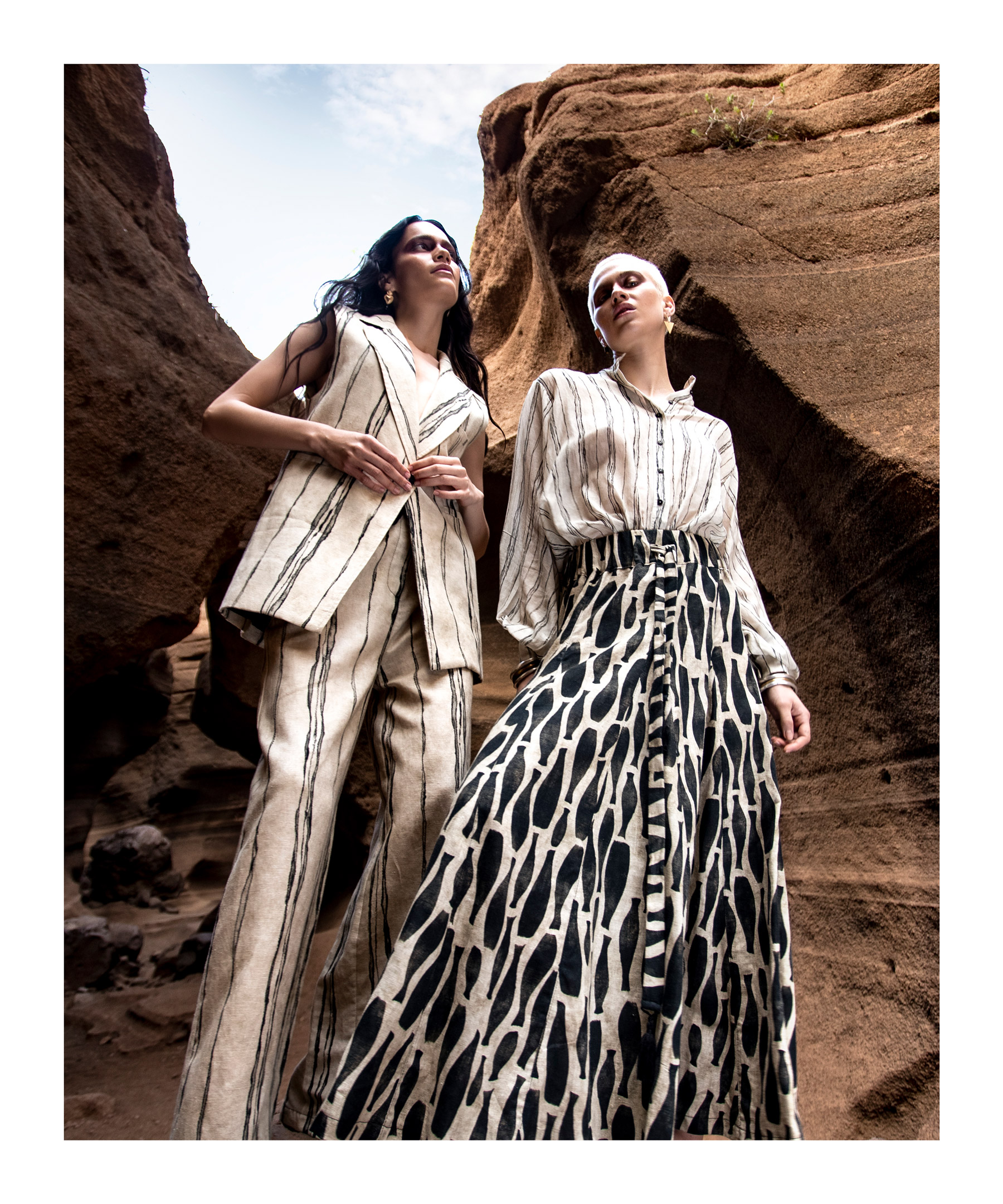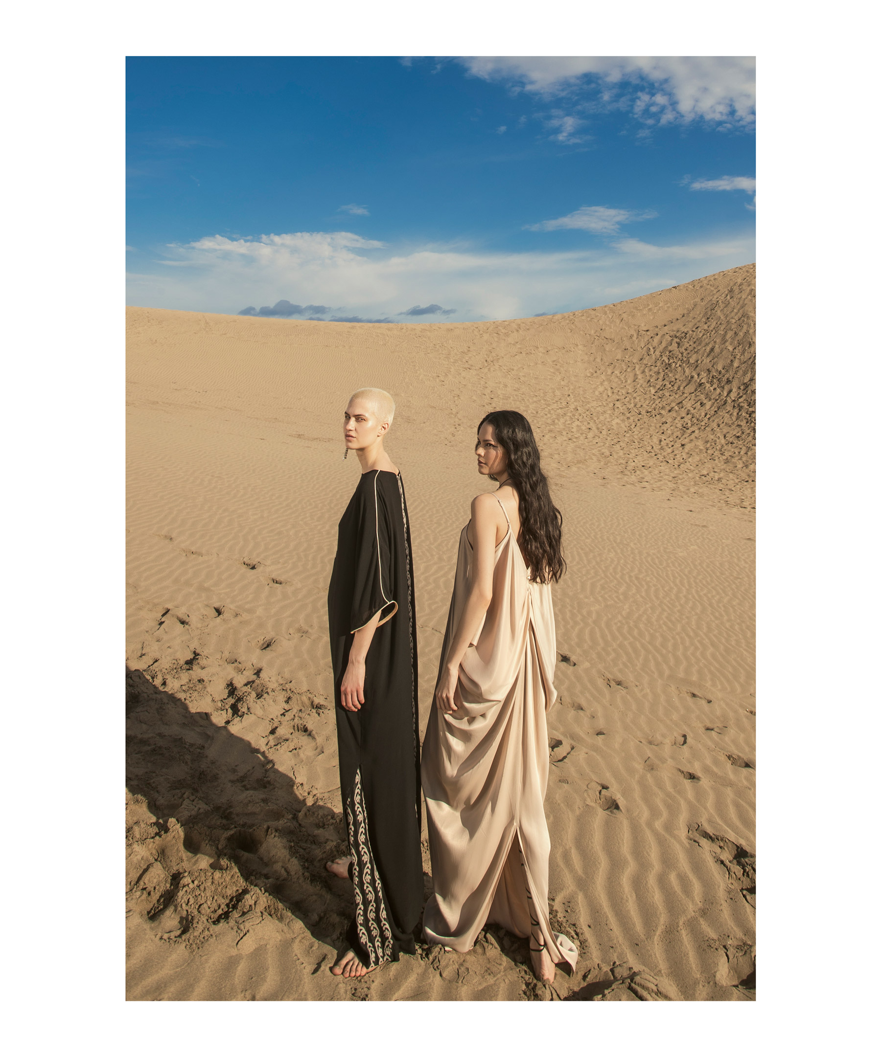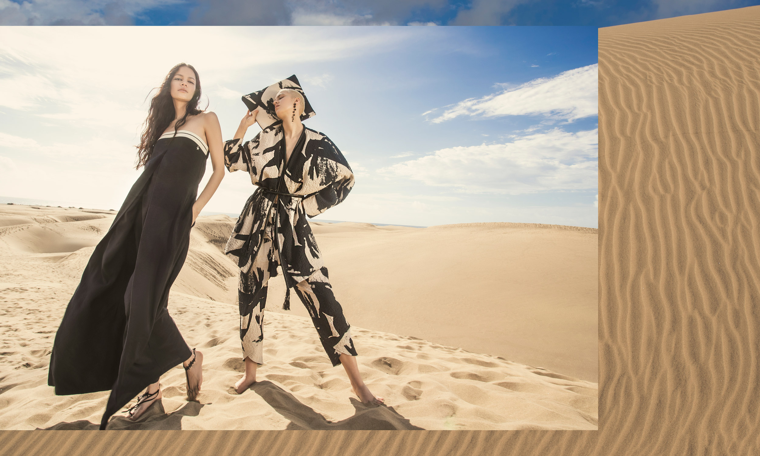 In questa collezione ritroviamo il vento che dà forma alle rocce, la sabbia che brilla sotto al sole, il bianco delicato delle nubi in una giornata estiva.