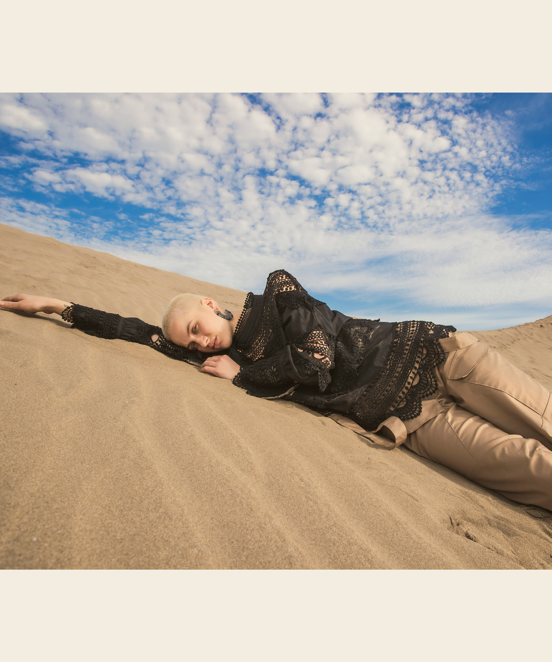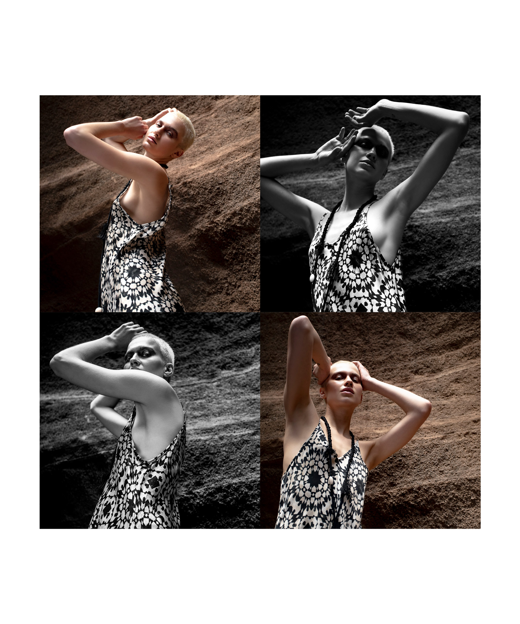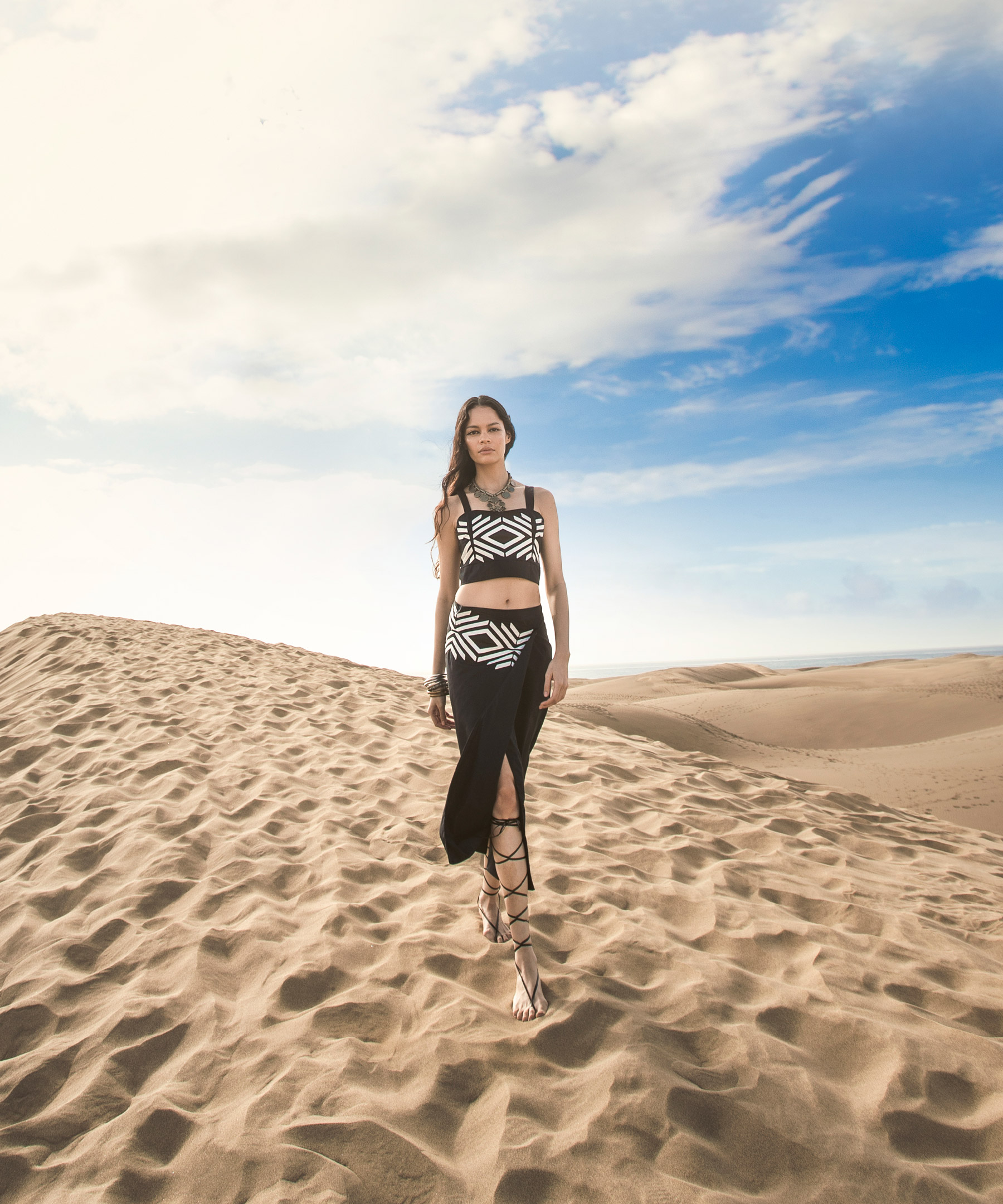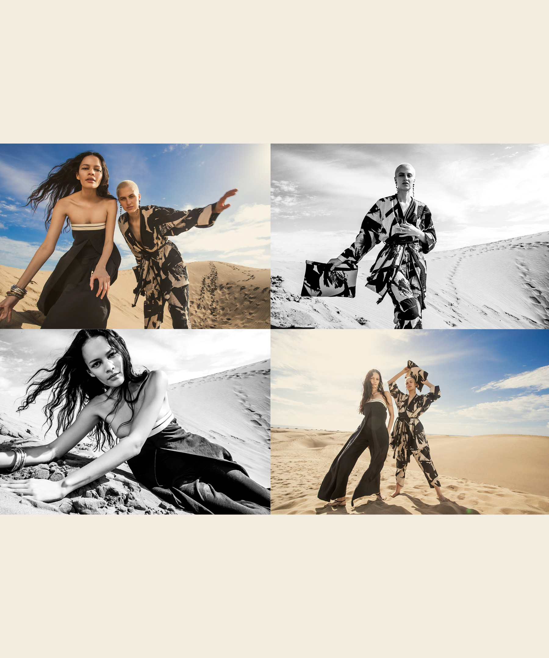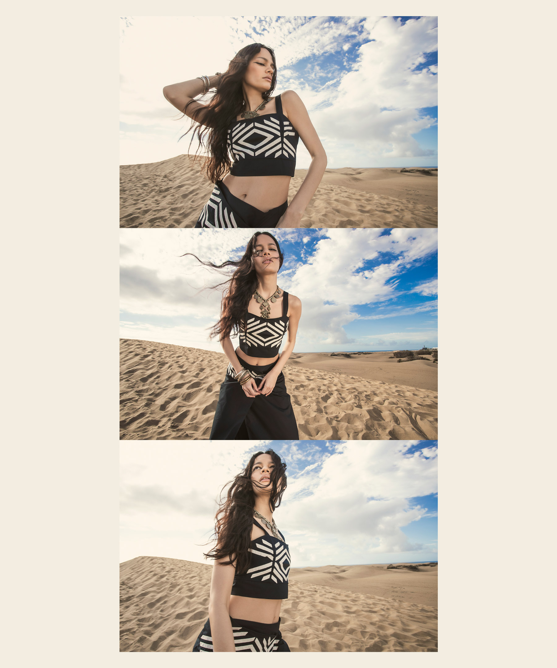 In questa collezione ritroviamo il vento che dà forma alle rocce, la sabbia che brilla sotto al sole, il bianco delicato delle nubi in una giornata estiva.
