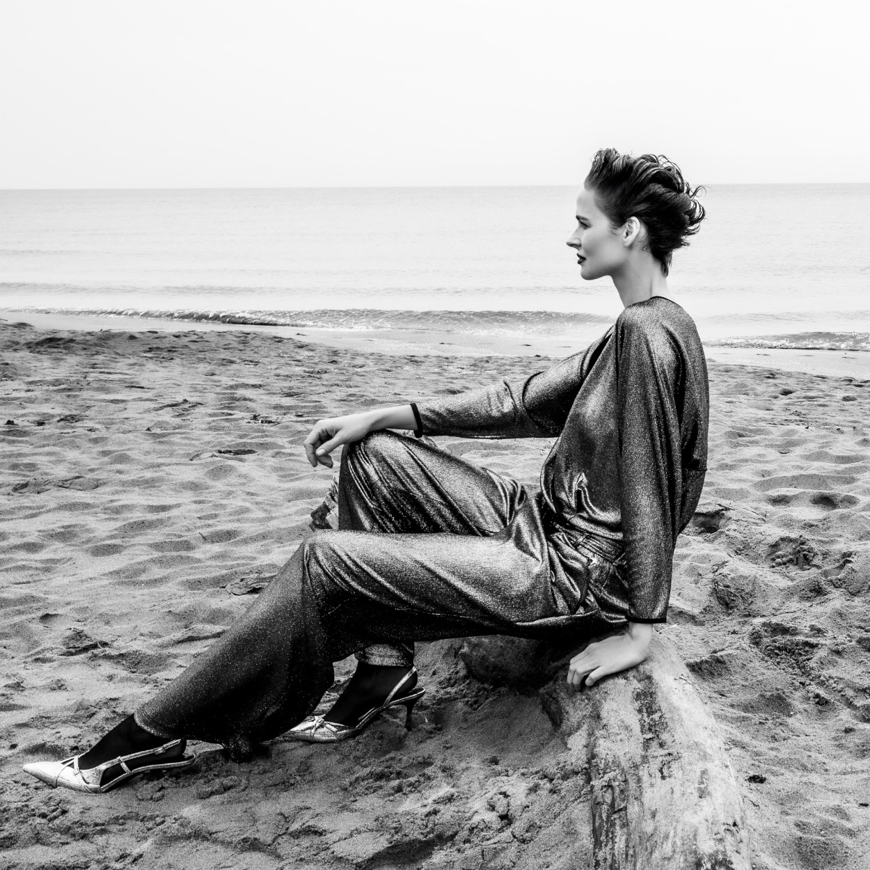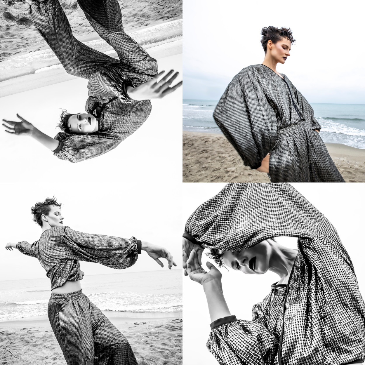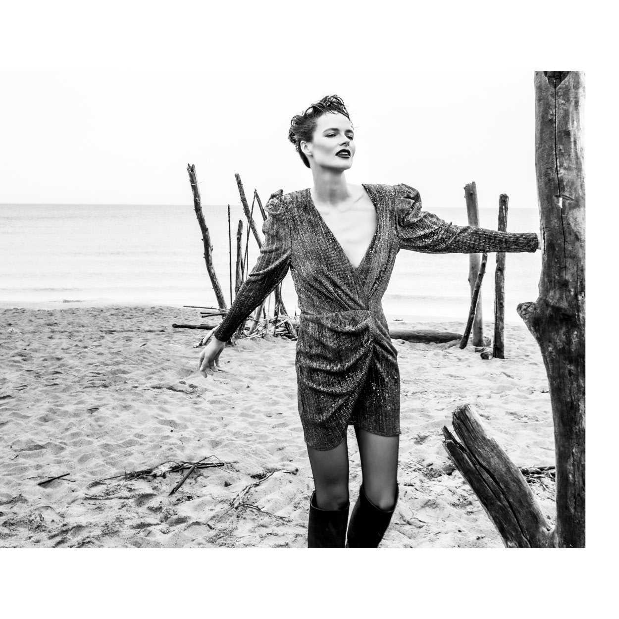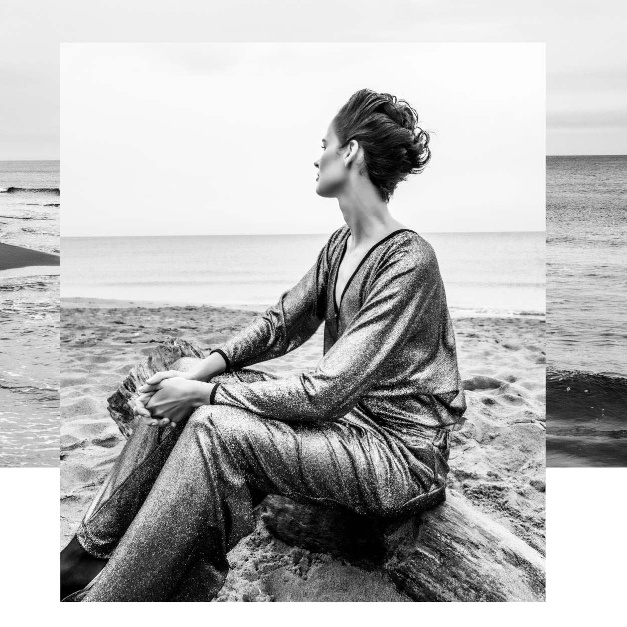 Come le onde che danzano sul mare invernale, gli abiti si muovono con leggerezza e armonia. Le linee sinuose, i tagli sartoriali impeccabili e i dettagli preziosi raccontano una femminilitร moderna, avvolta in tessuti che catturano la luce come riflessi sulla superficie dellโacqua.