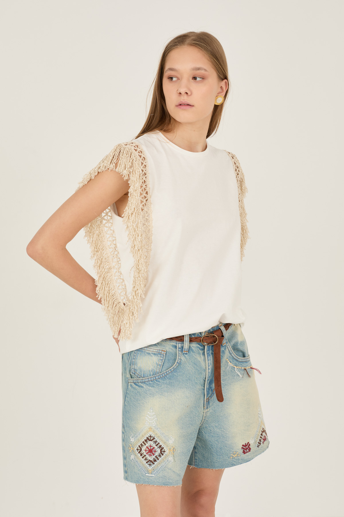 Felpa cotone con inserto macrame