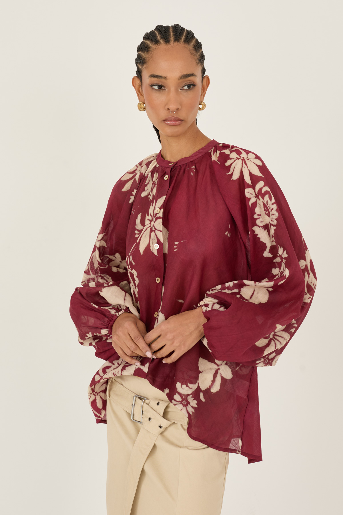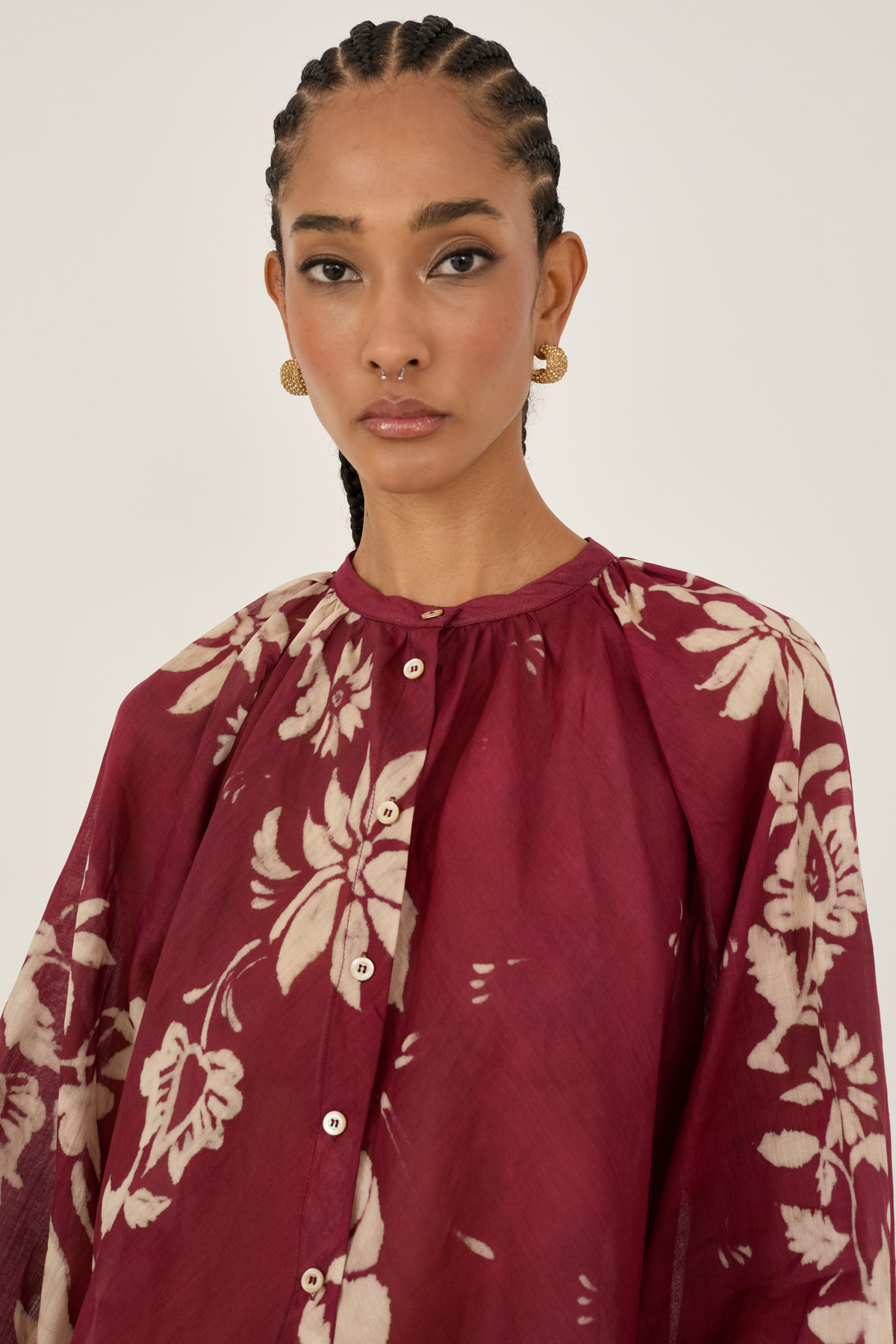 Camicia floreale in rayon e cotone
