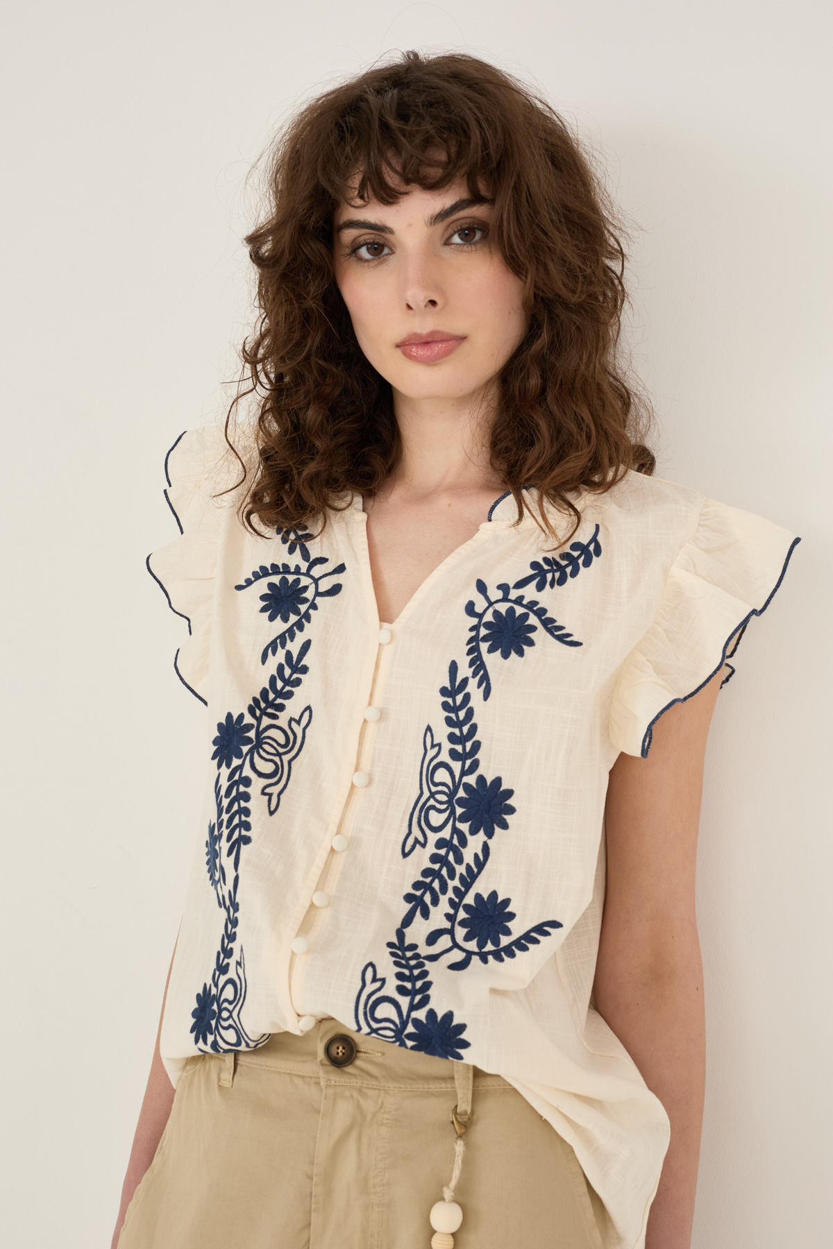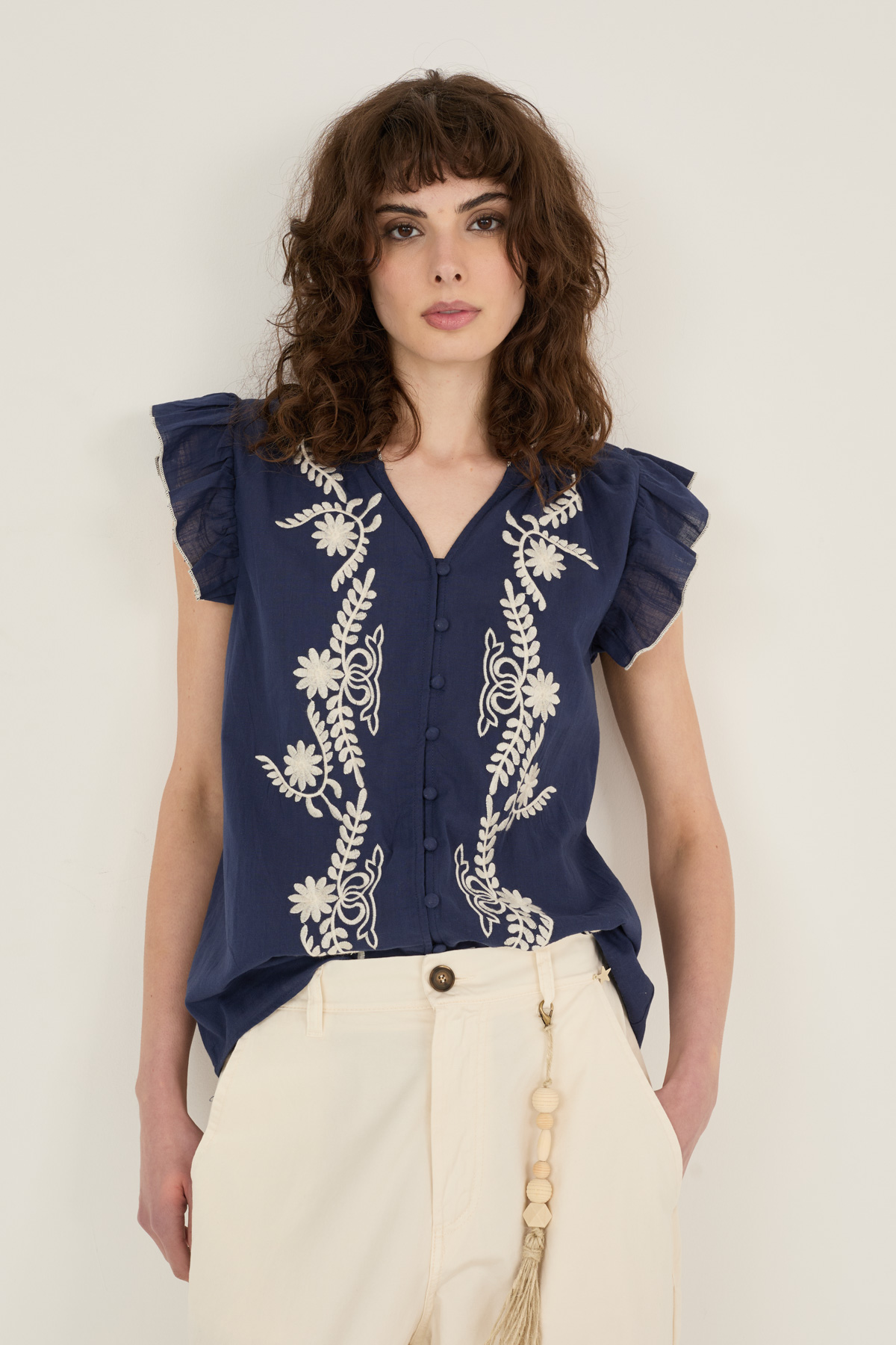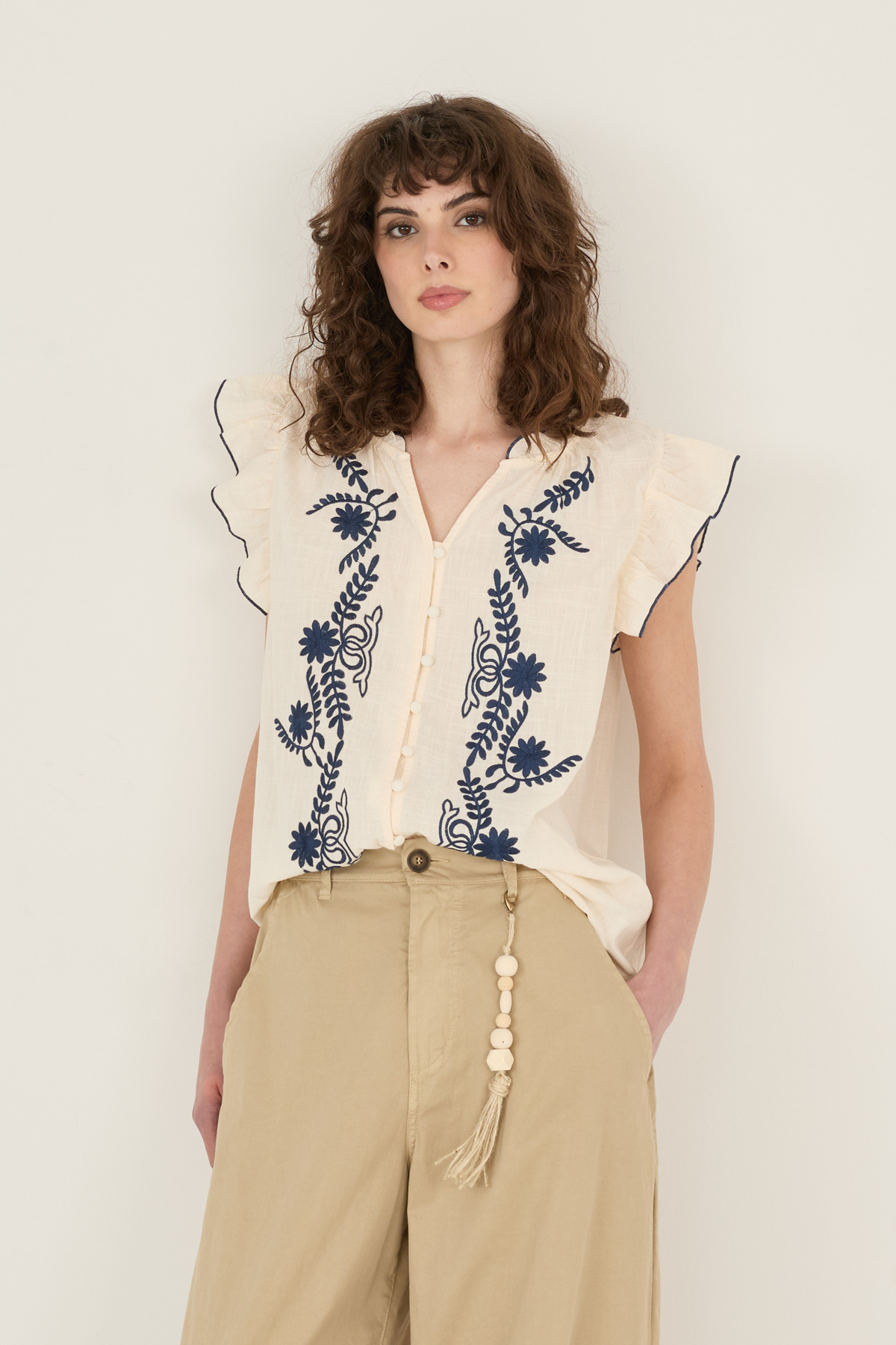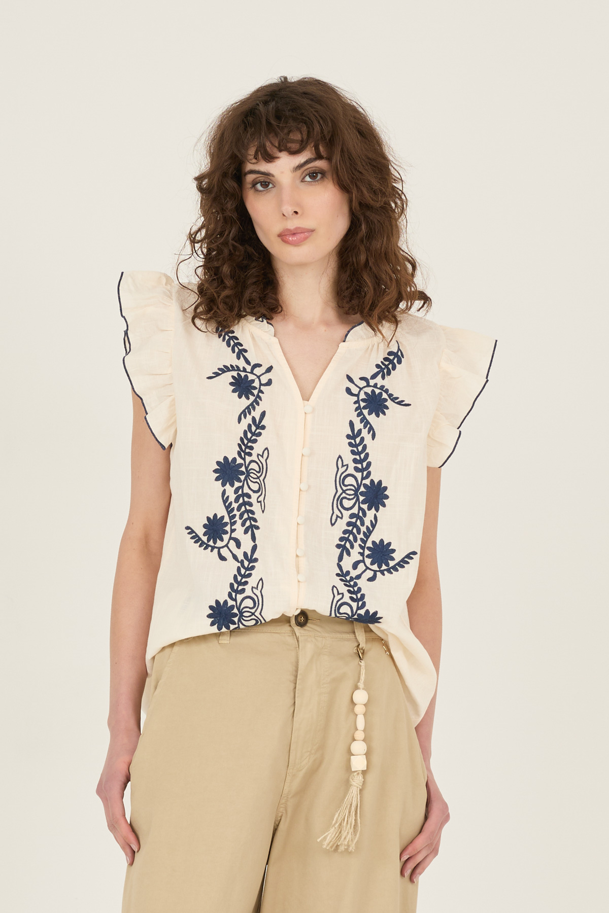 Camicia in cotone con ricami
