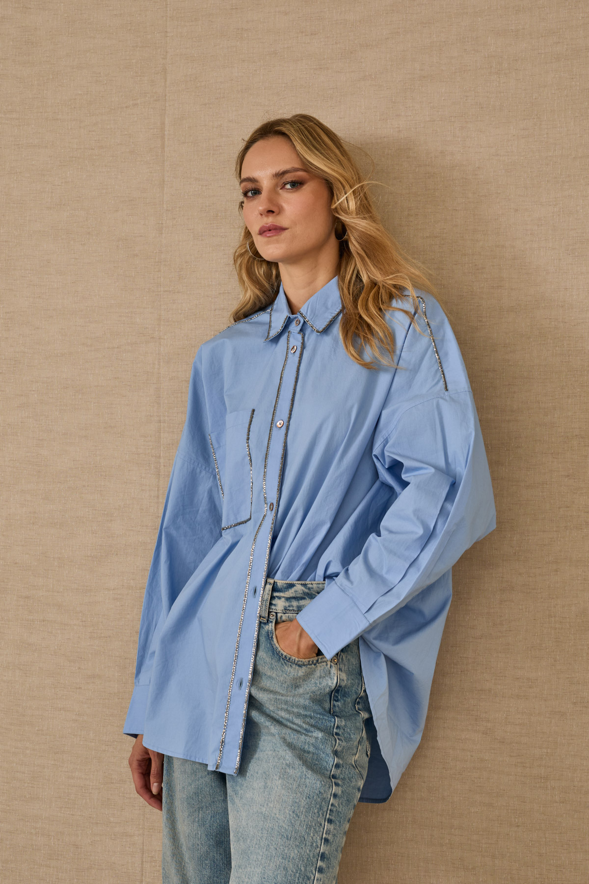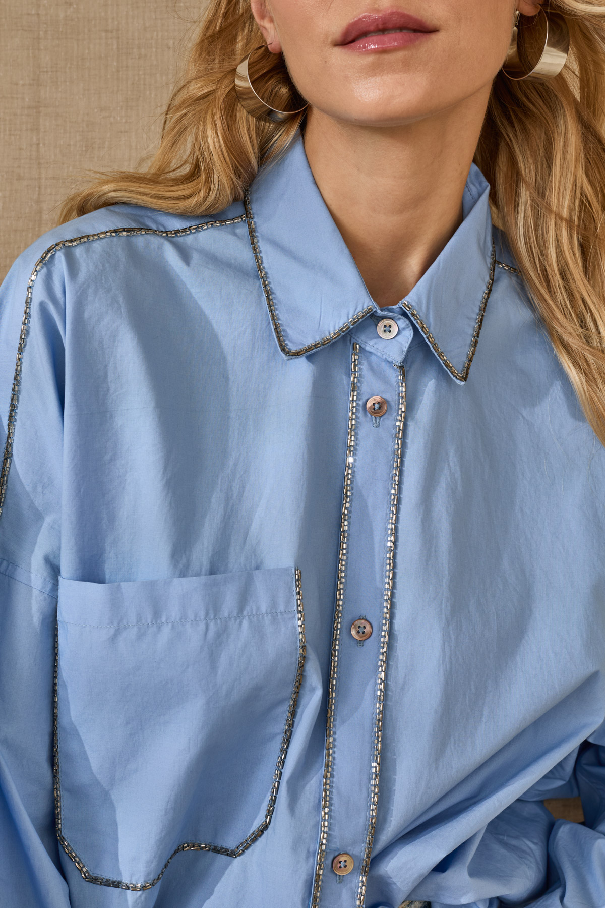 Camicia in cotone con ricami perline