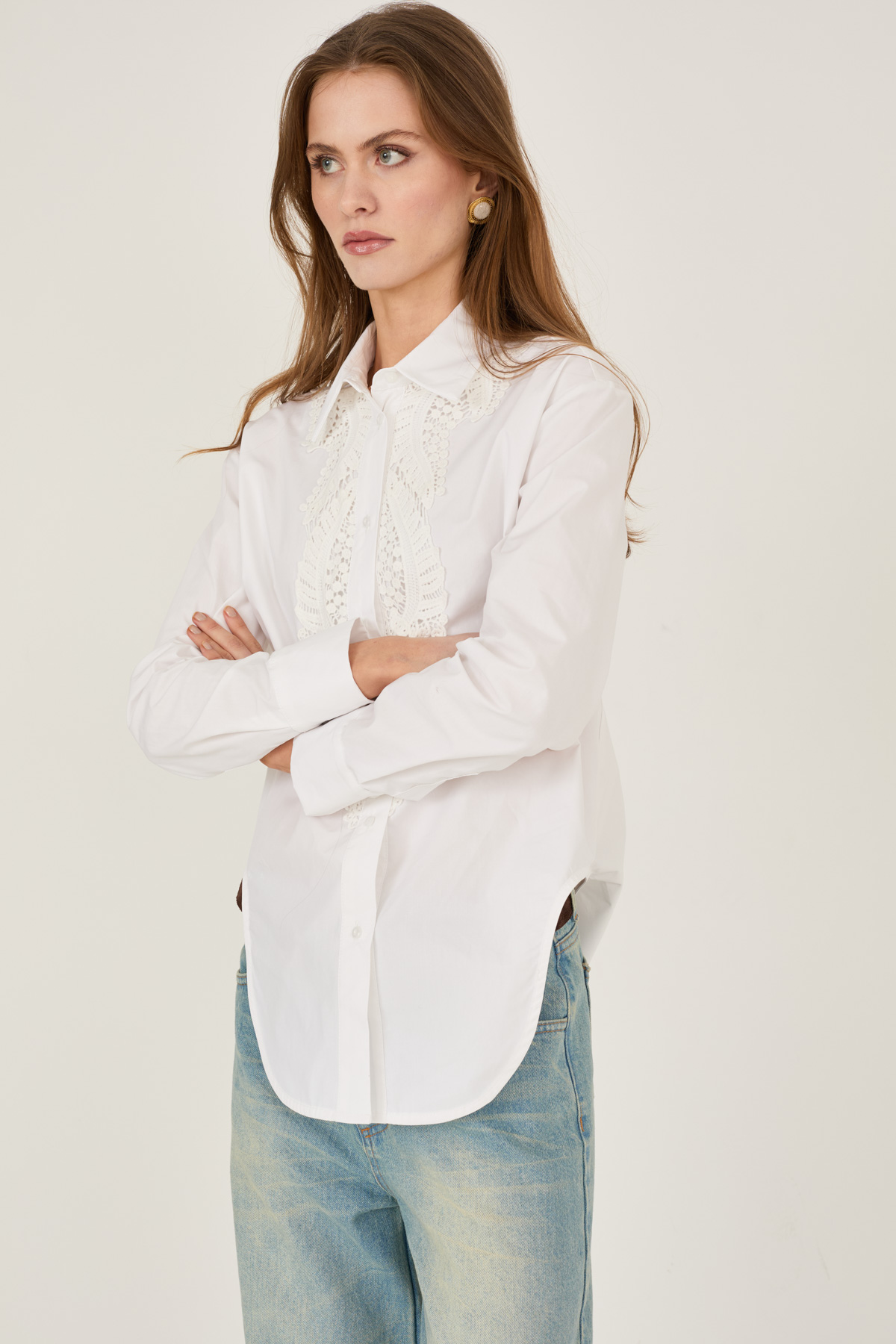 Camicia in popeline con ricami