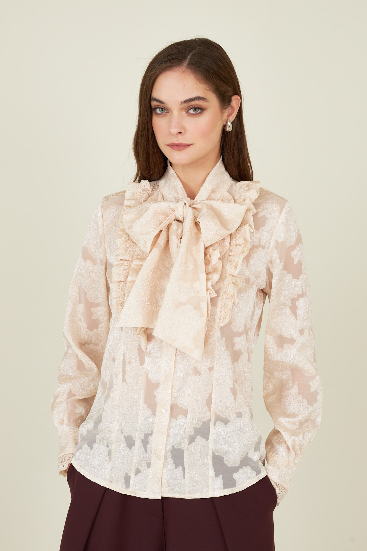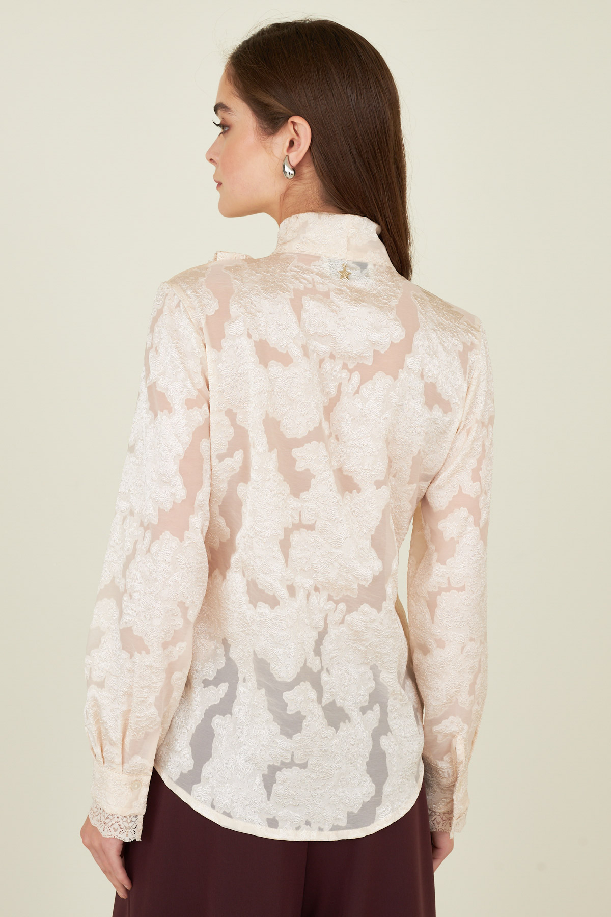Camicia in tessuto semitrasparente con ricami