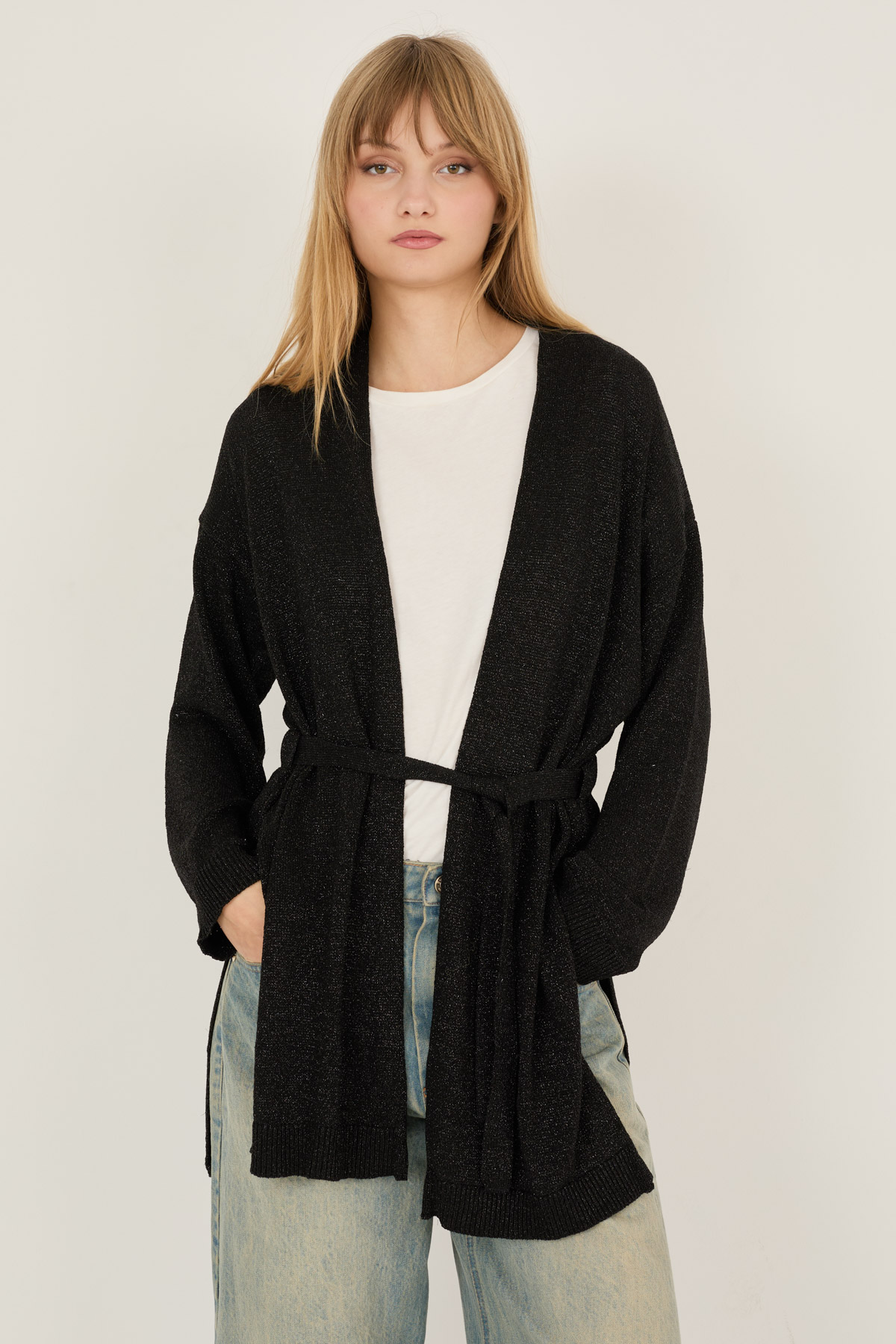 Cardigan in viscosa con lurex