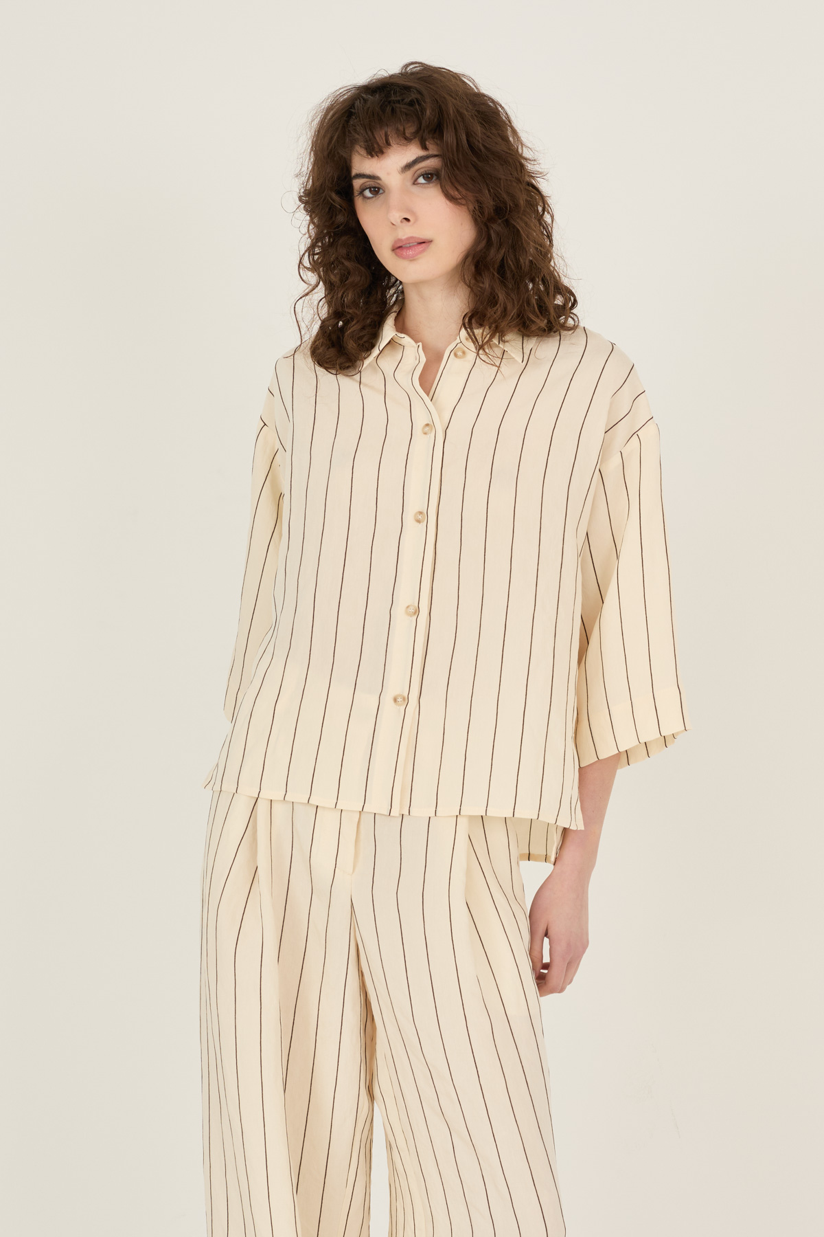 Camicia righe con ricami floreali