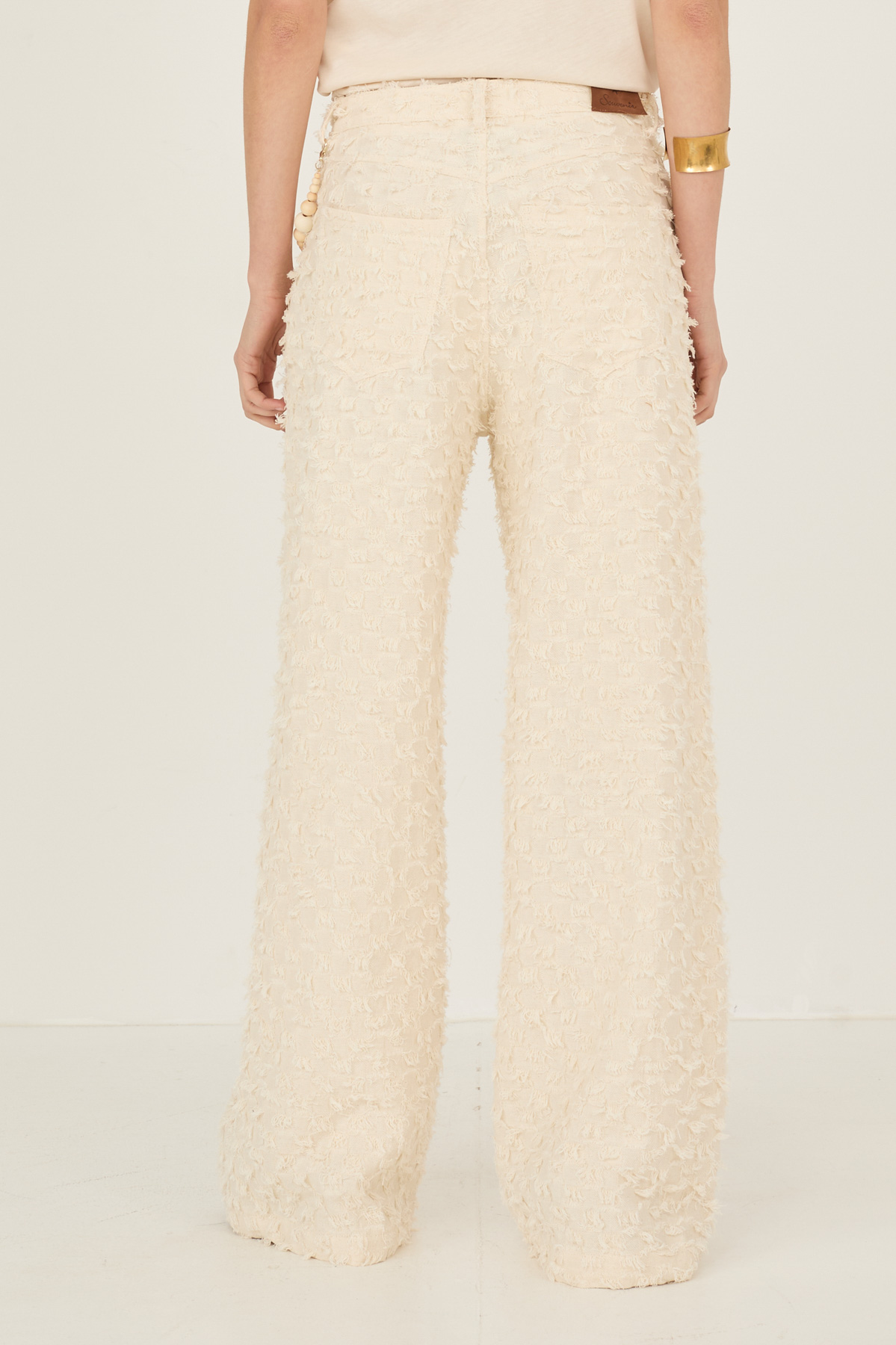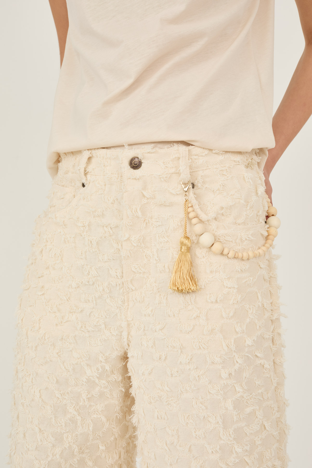 Denim sfrangiato in cotone con accessorio
