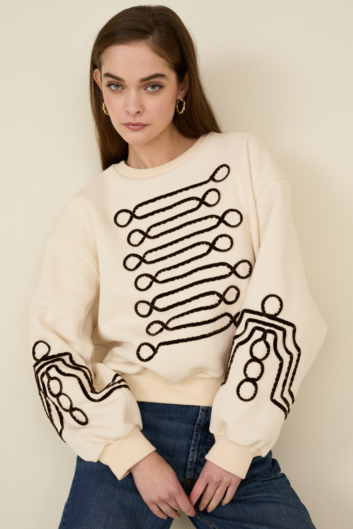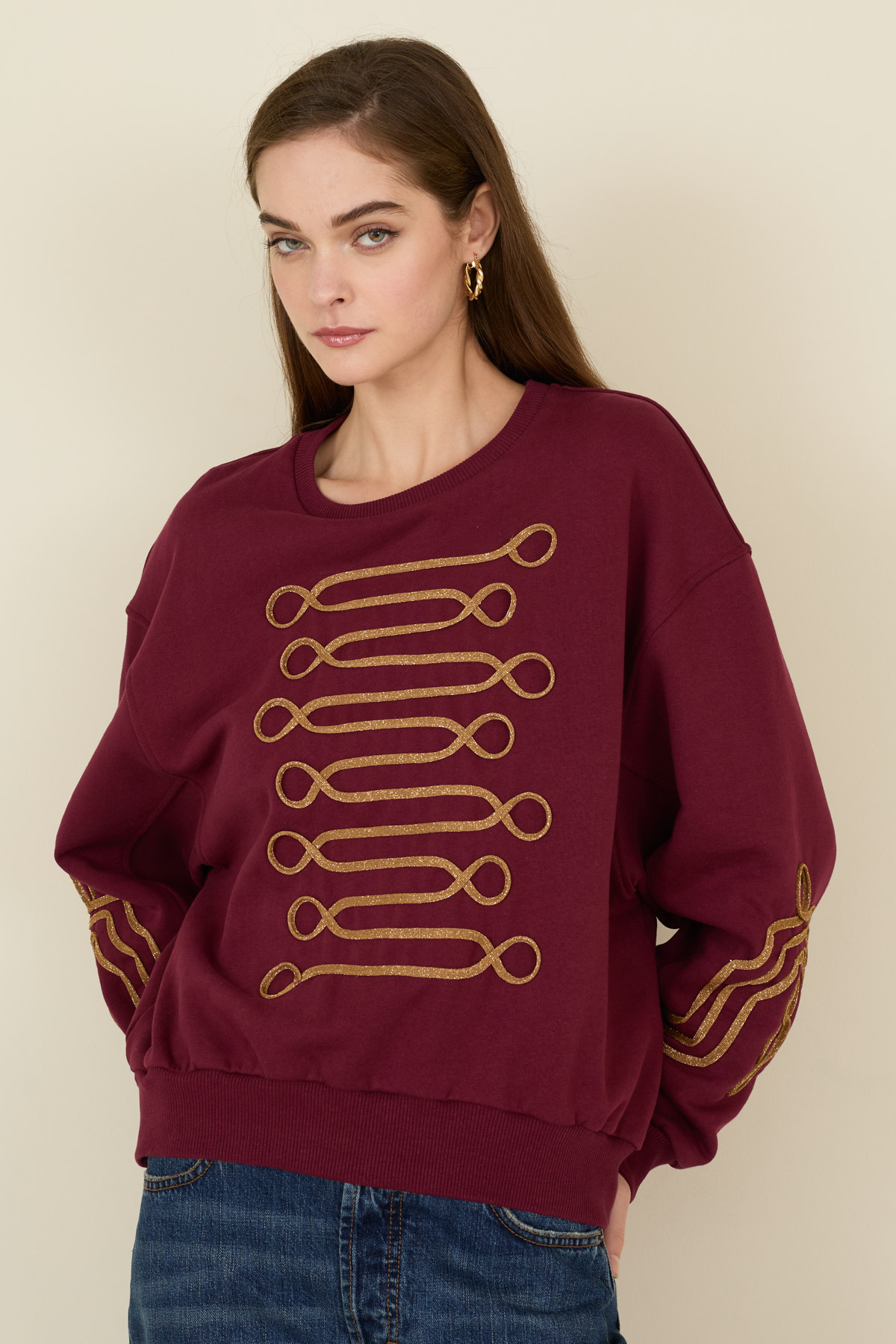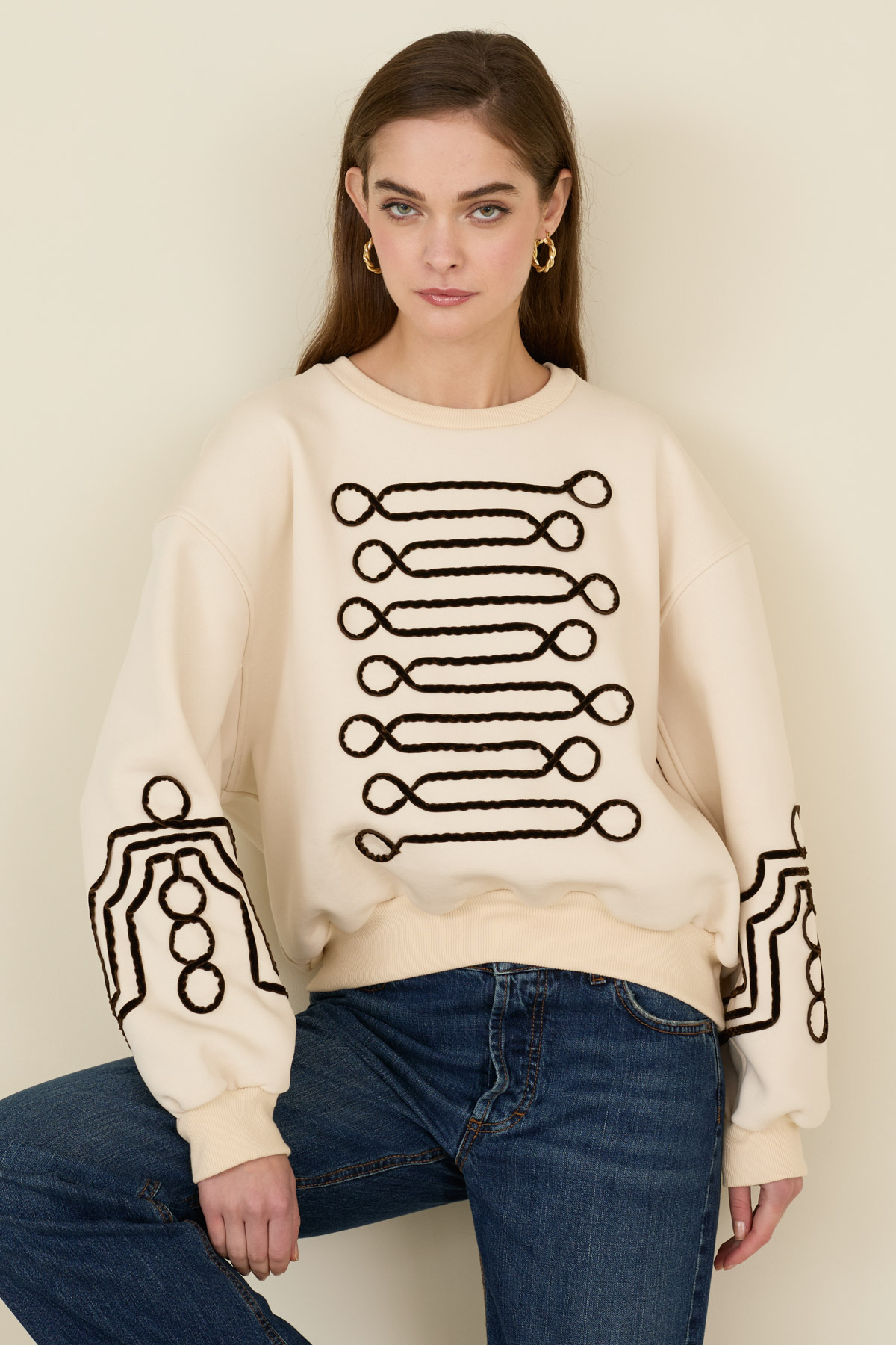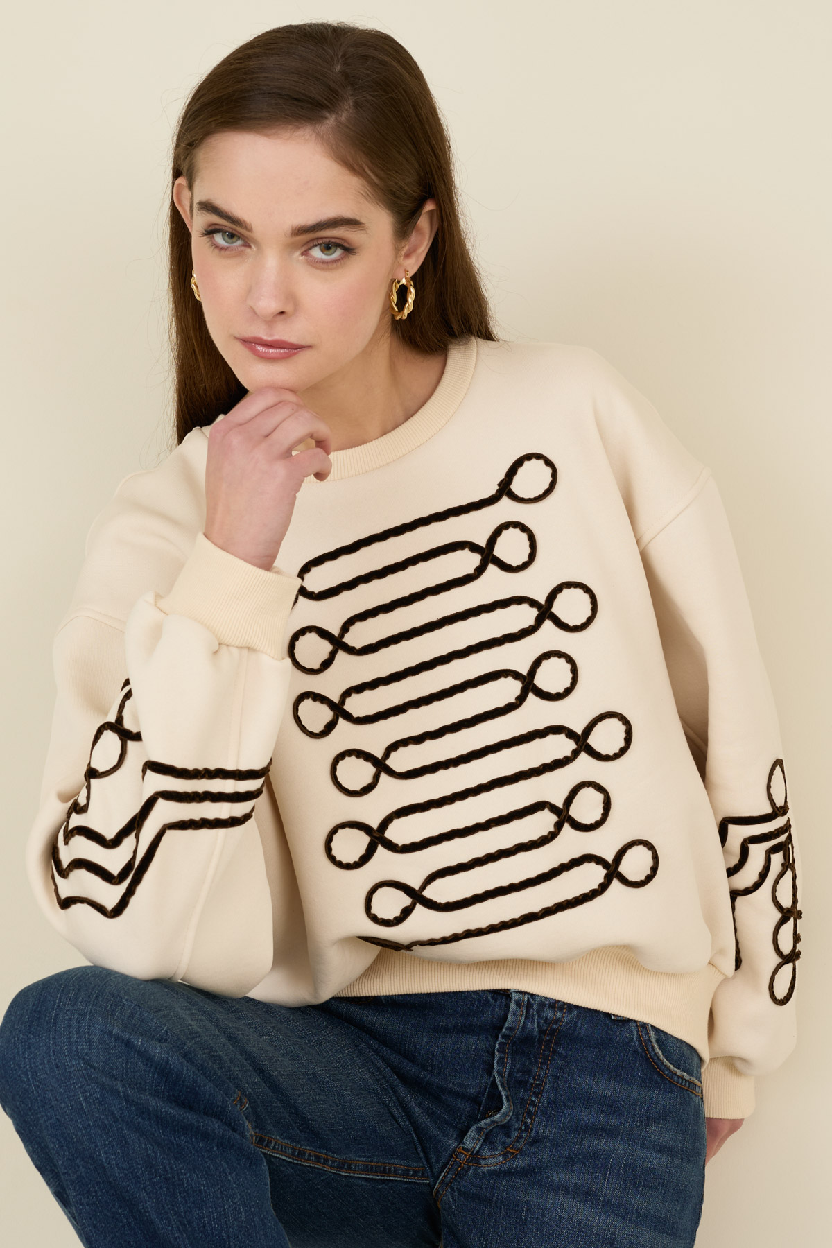 Felpa in cotone con ricami a contrasto