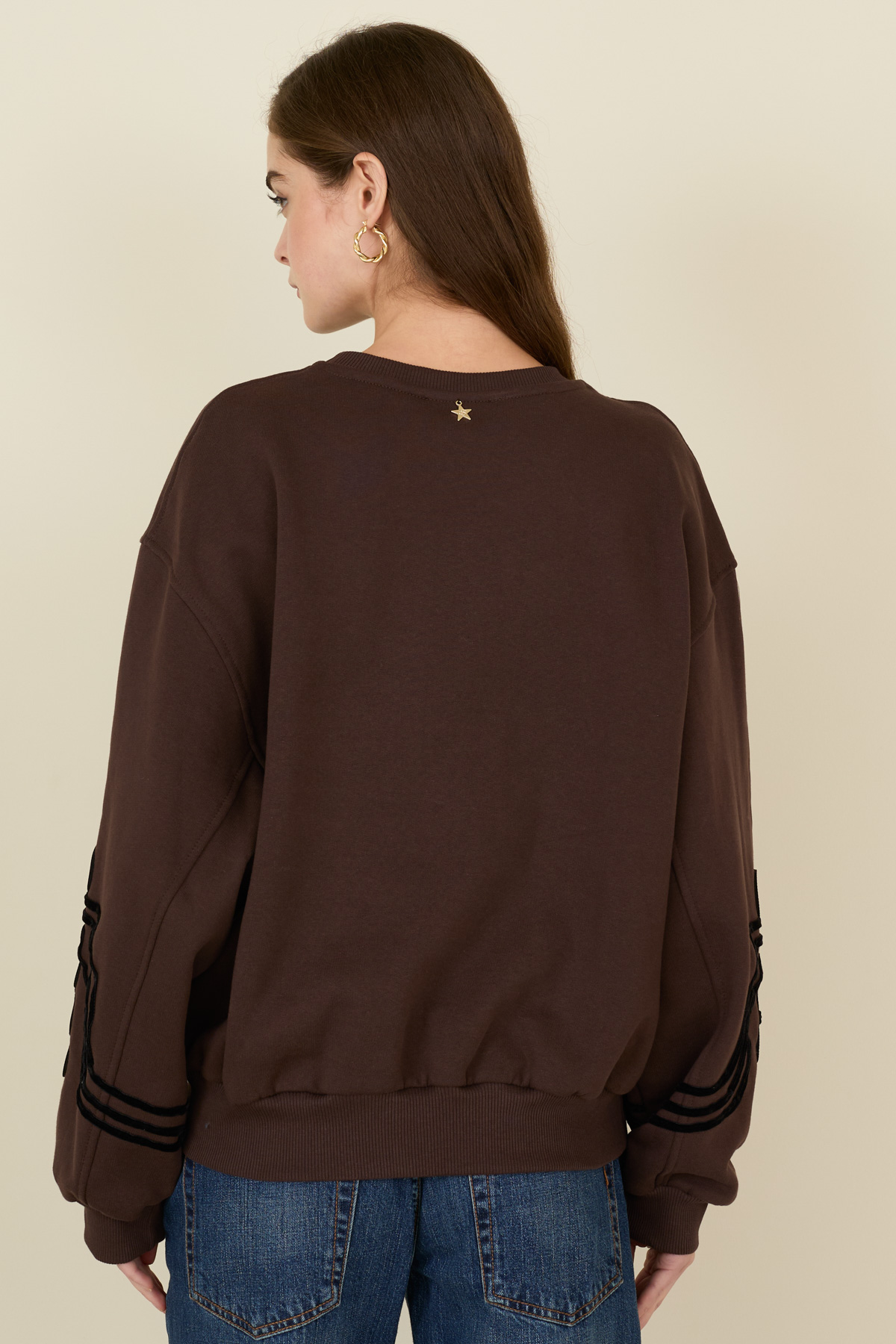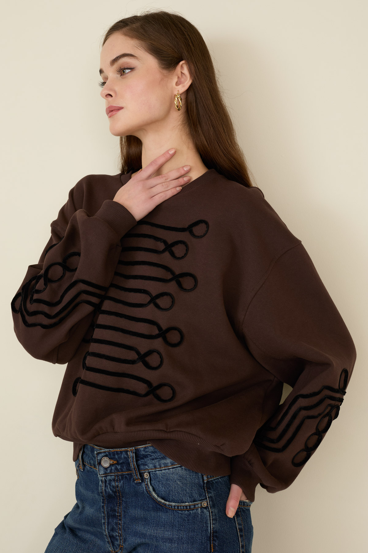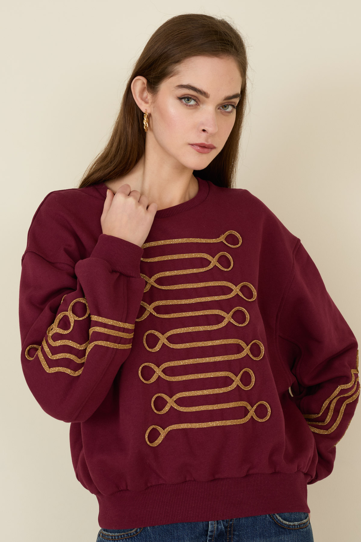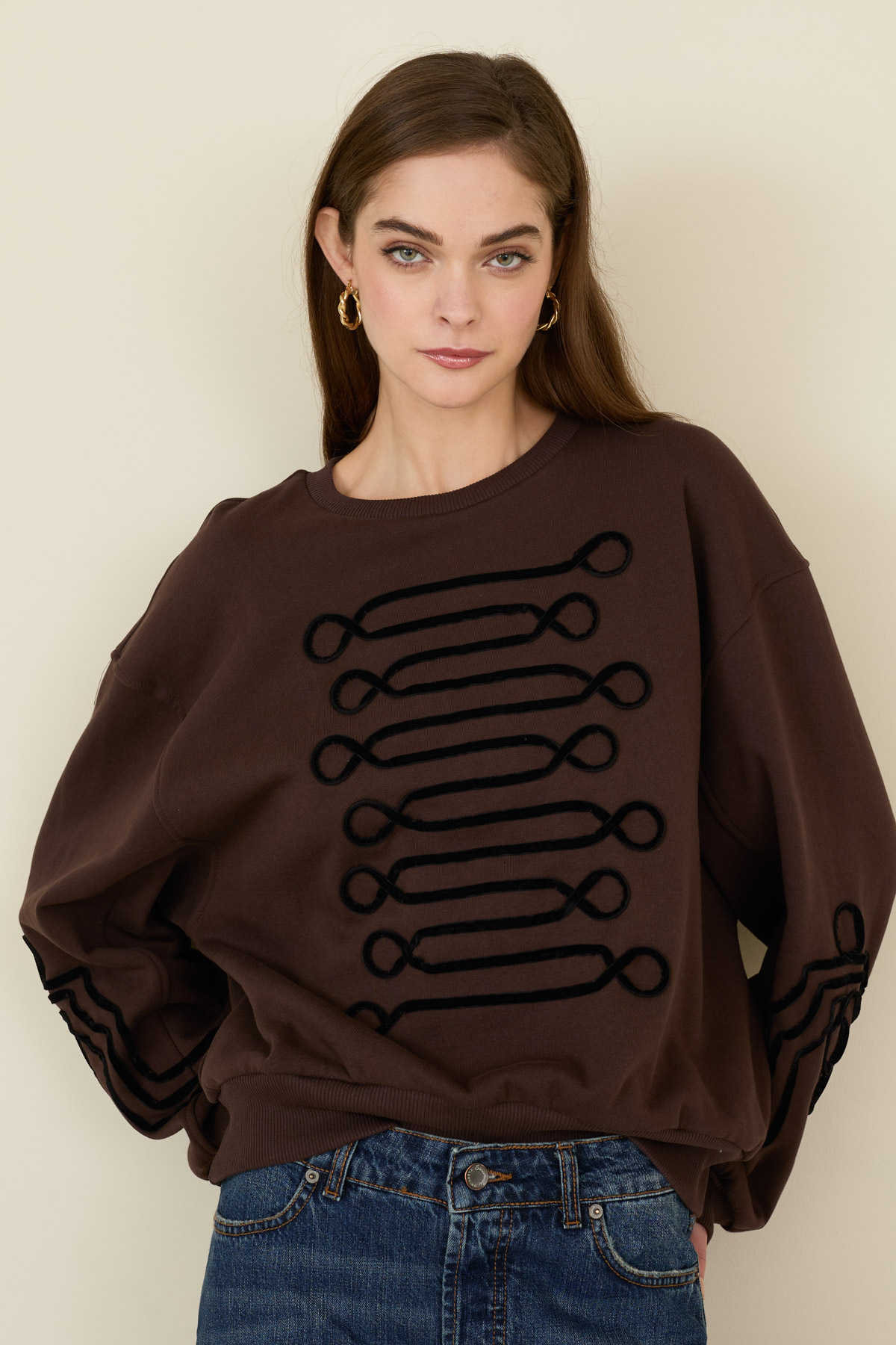 Felpa in cotone con ricami a contrasto