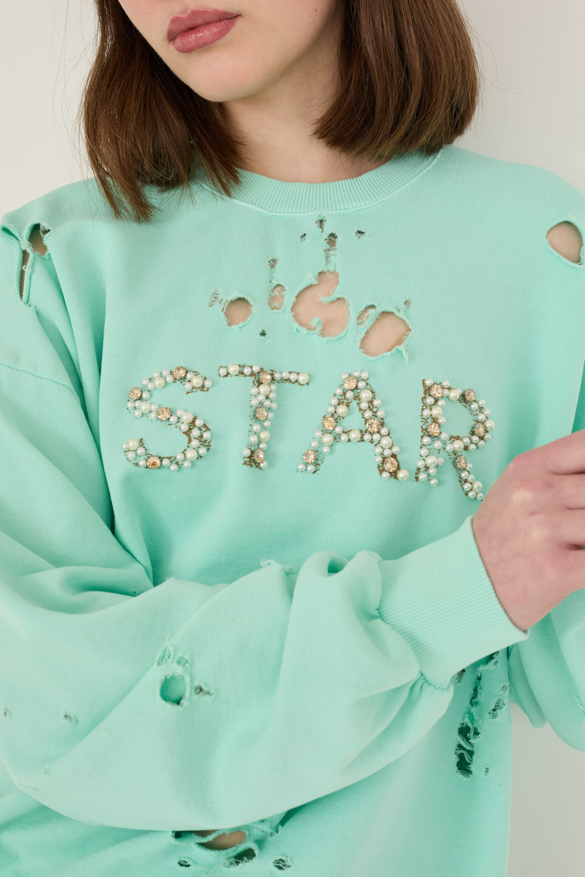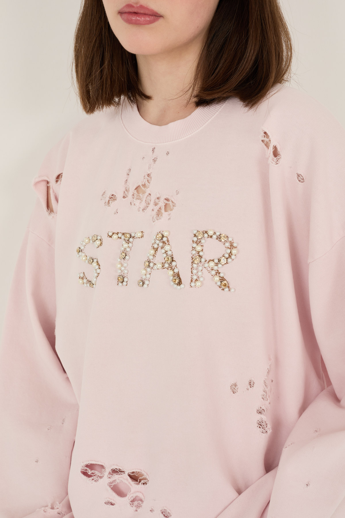 Felpa cotone con inserto macrame