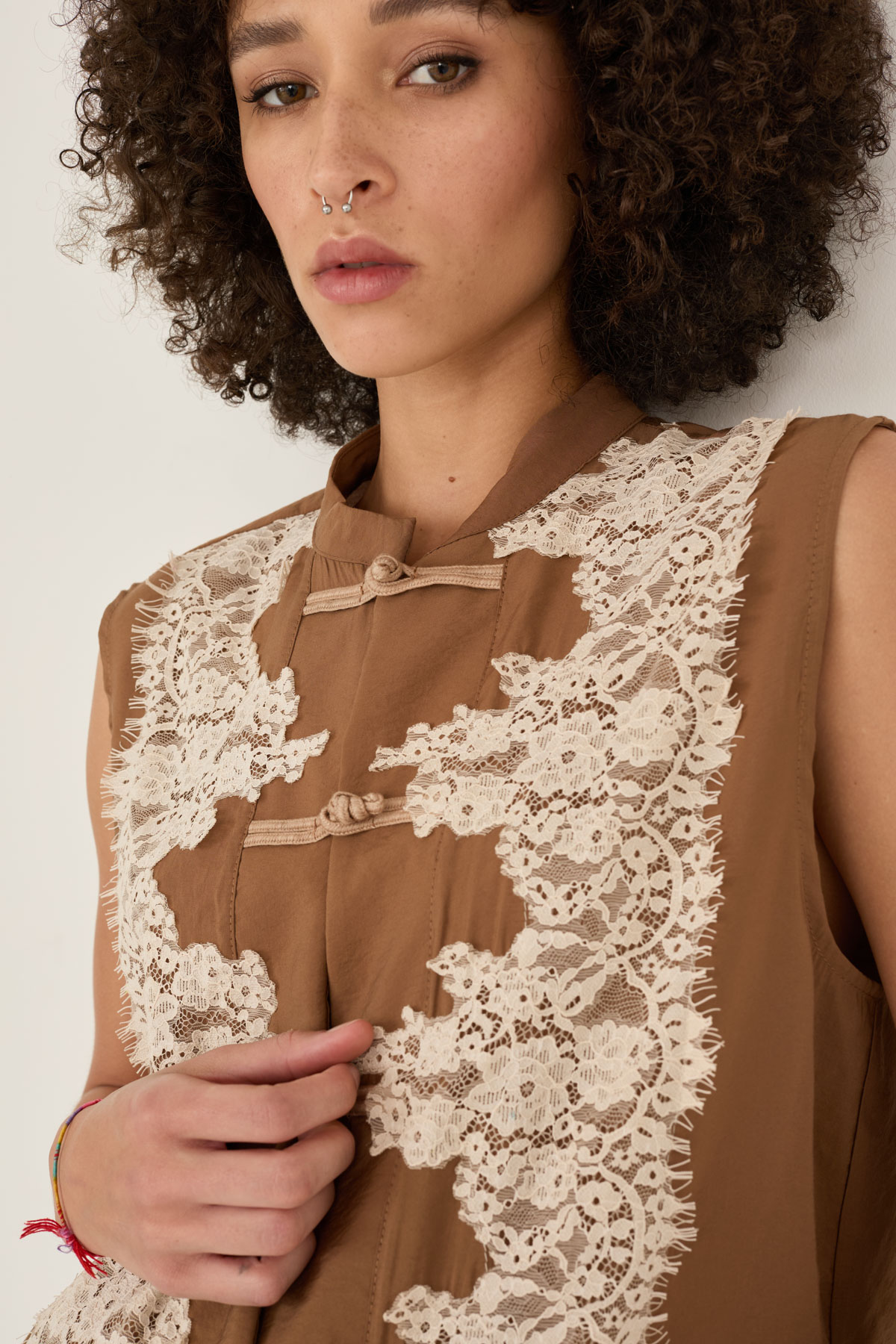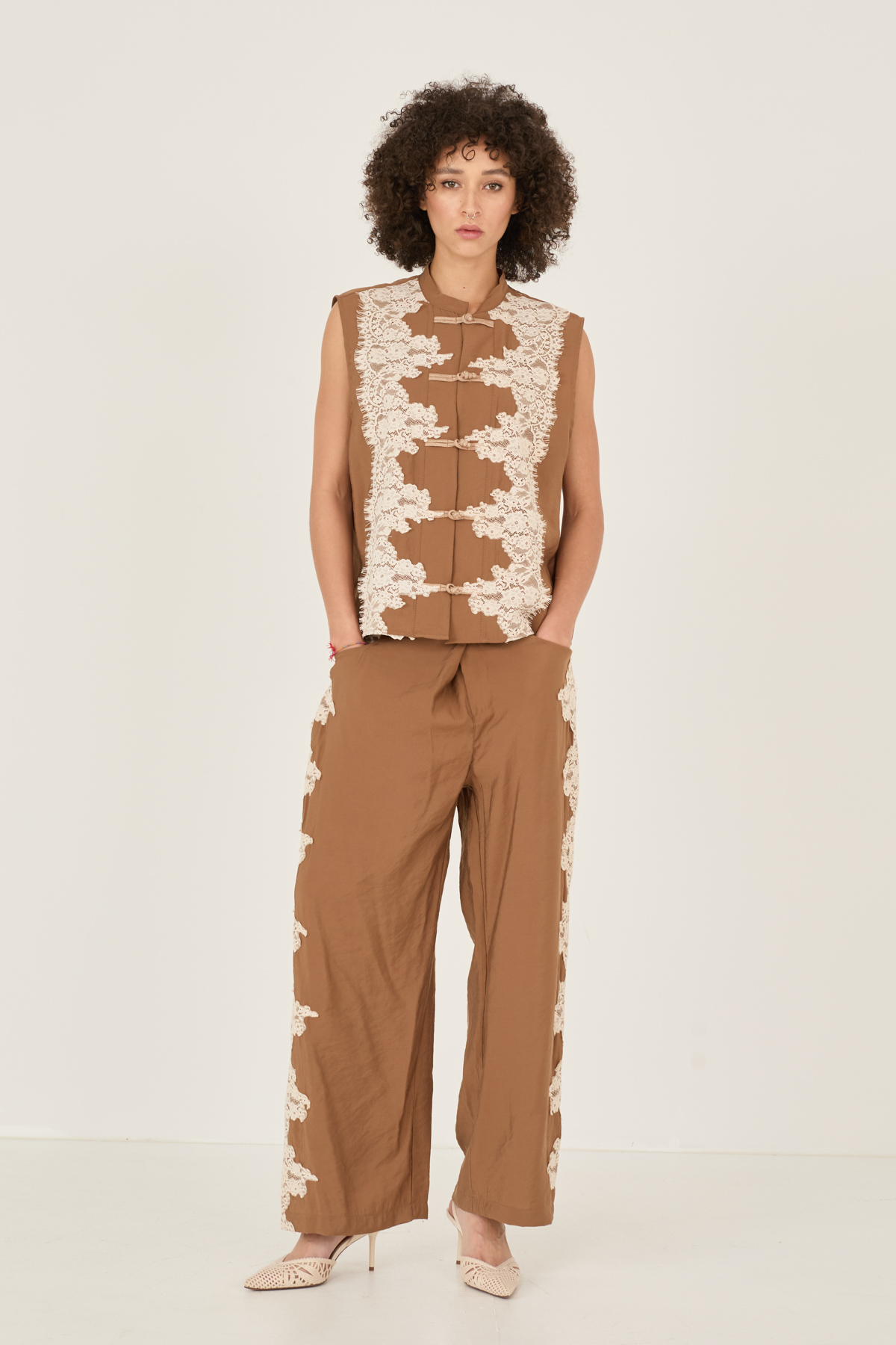 Gilet in modal con dettaglio pizzo