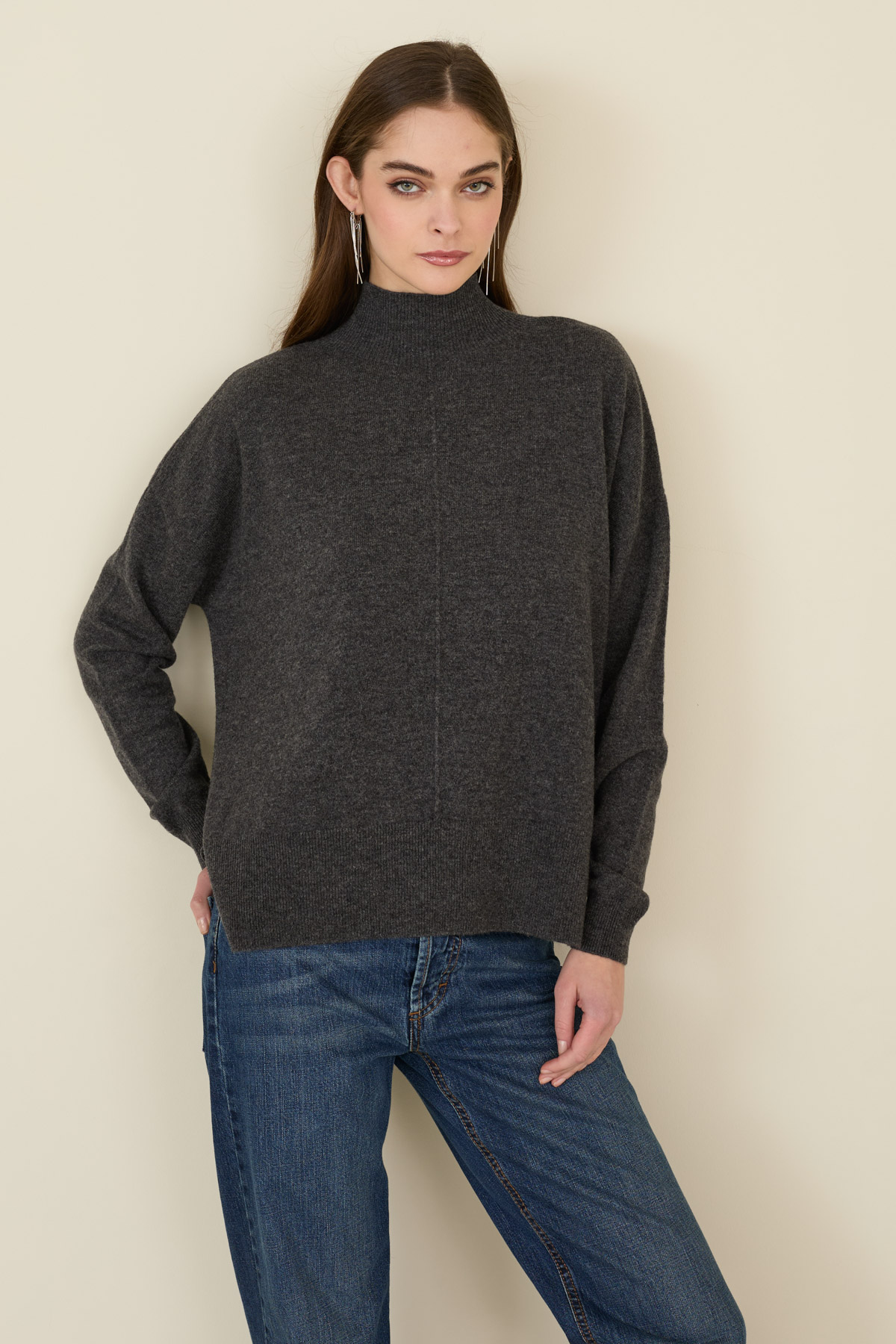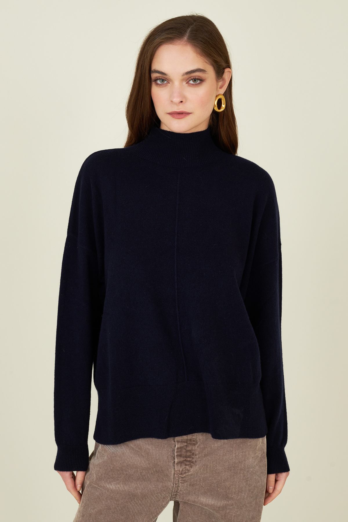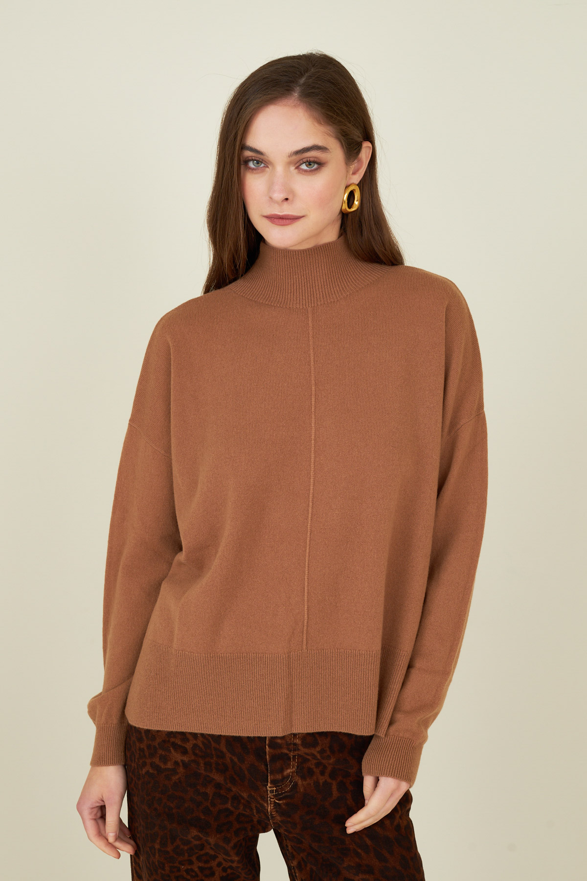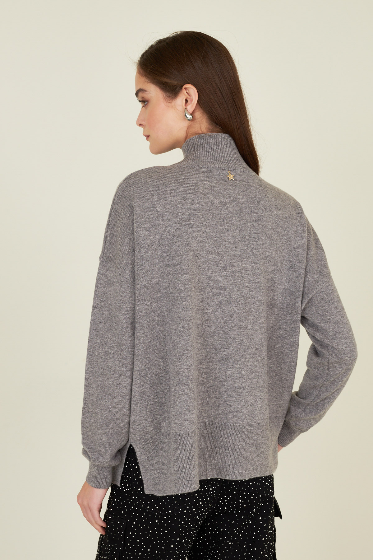 Maglia in lana con cucitura centrale.