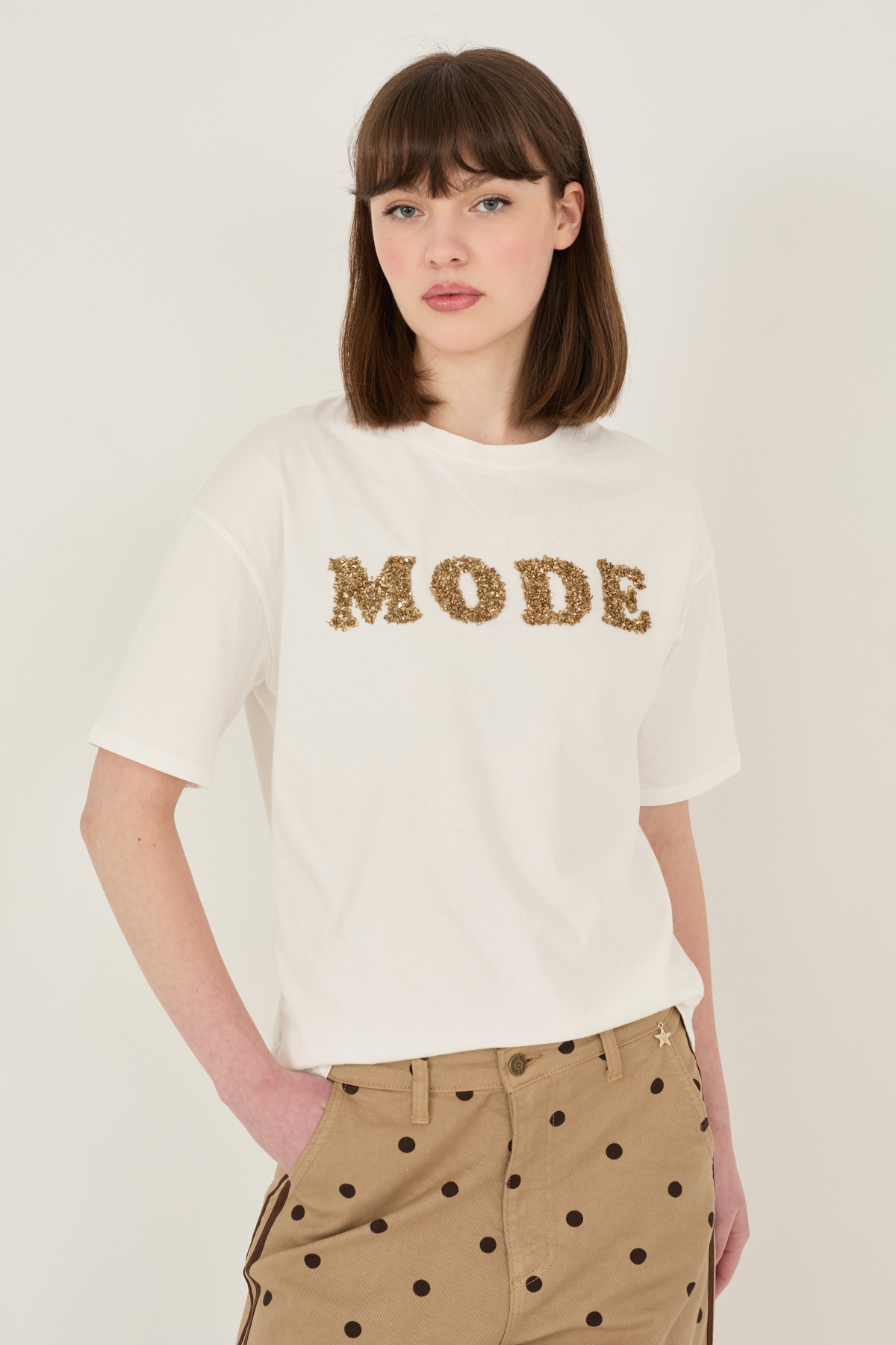 Pantalone a pois con bande laterali