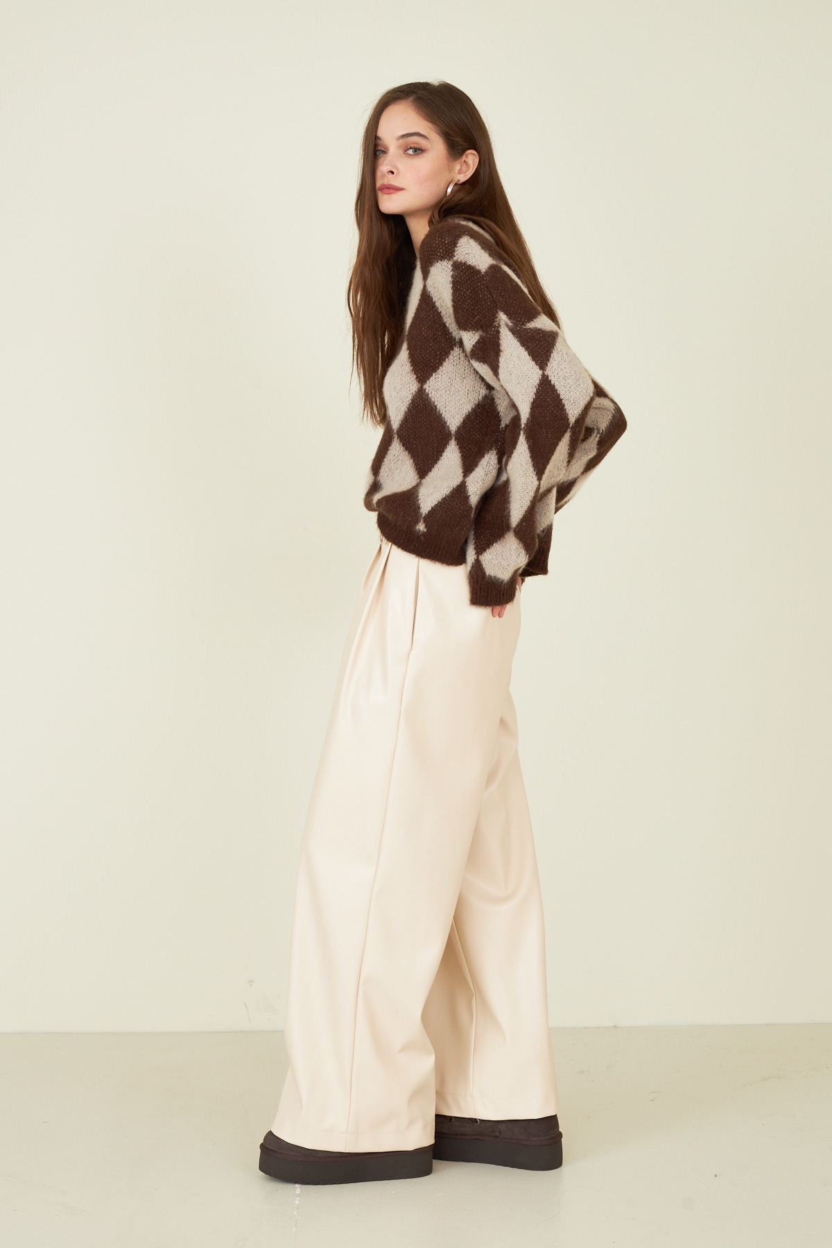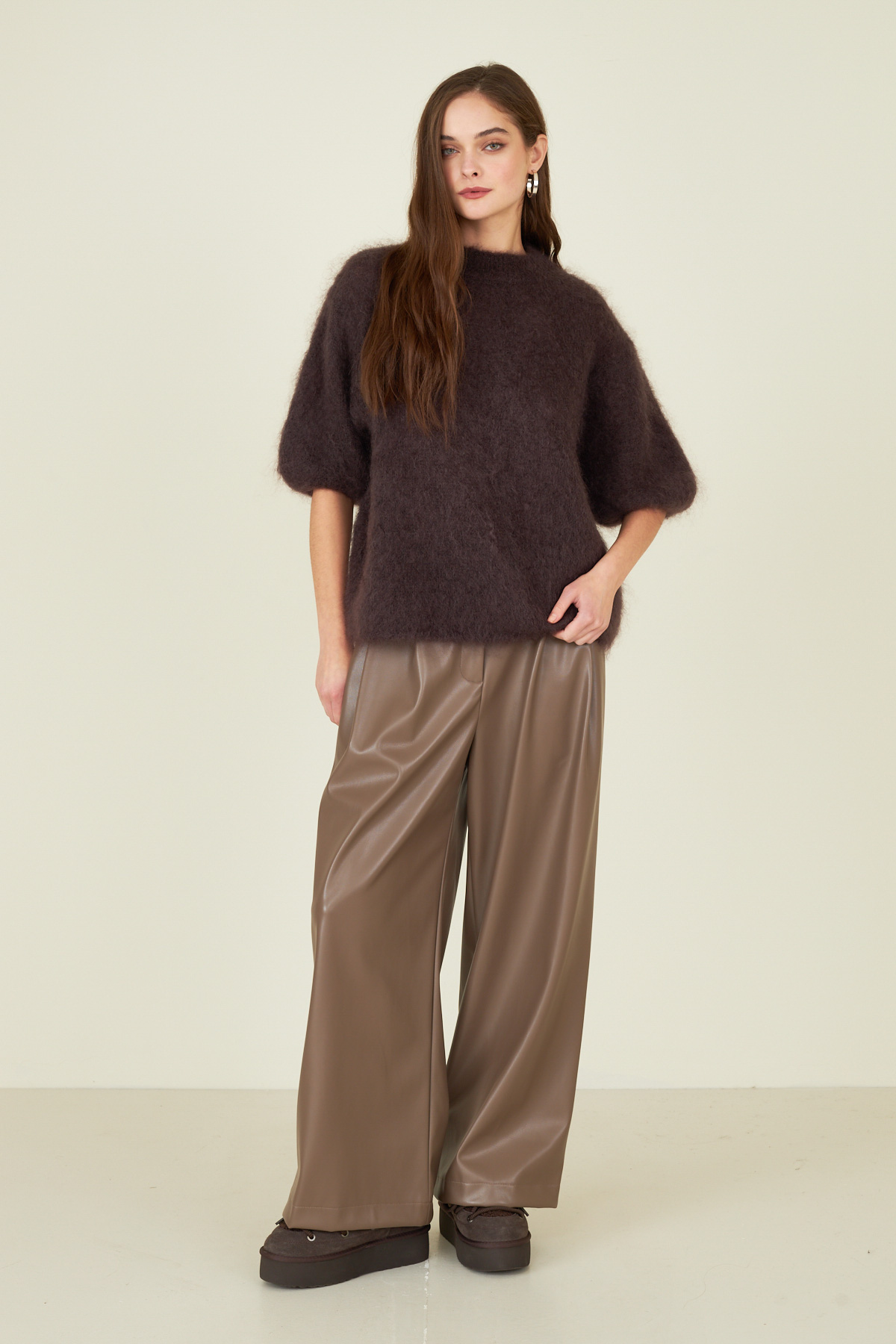 Pantalone in ecopelle con pinces