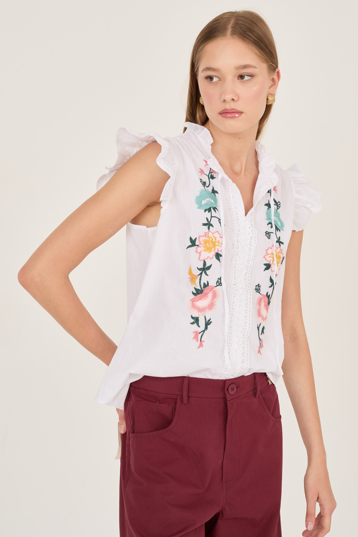 Camicia in cotone con ricami