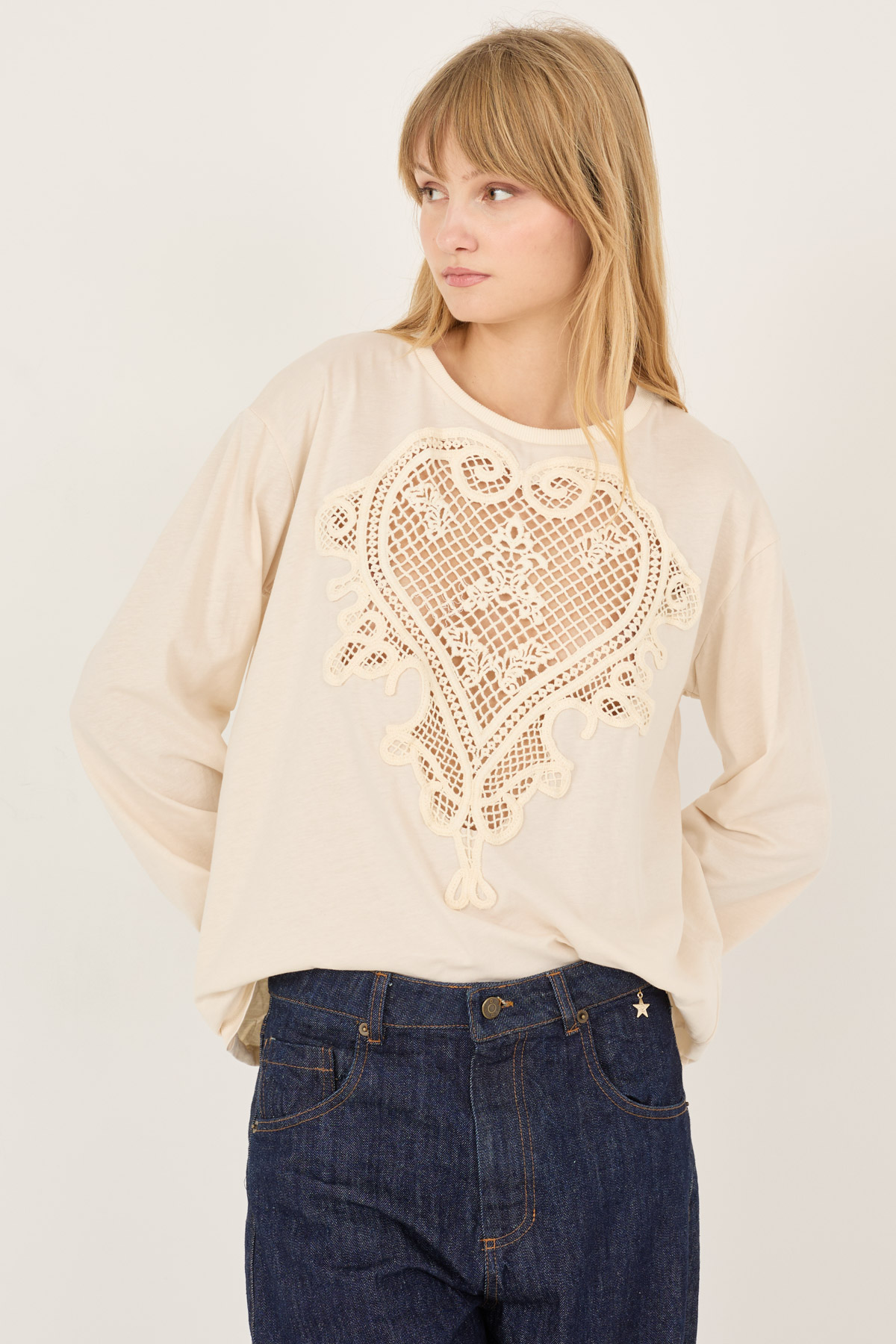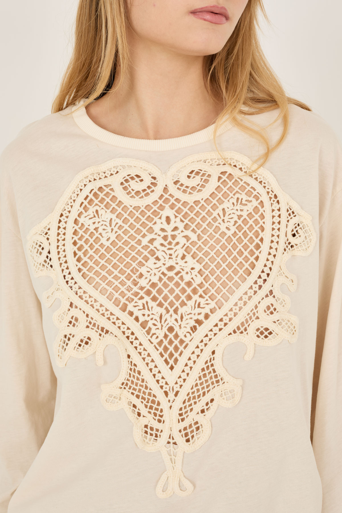 T-shirt con inserto cuore macrame’