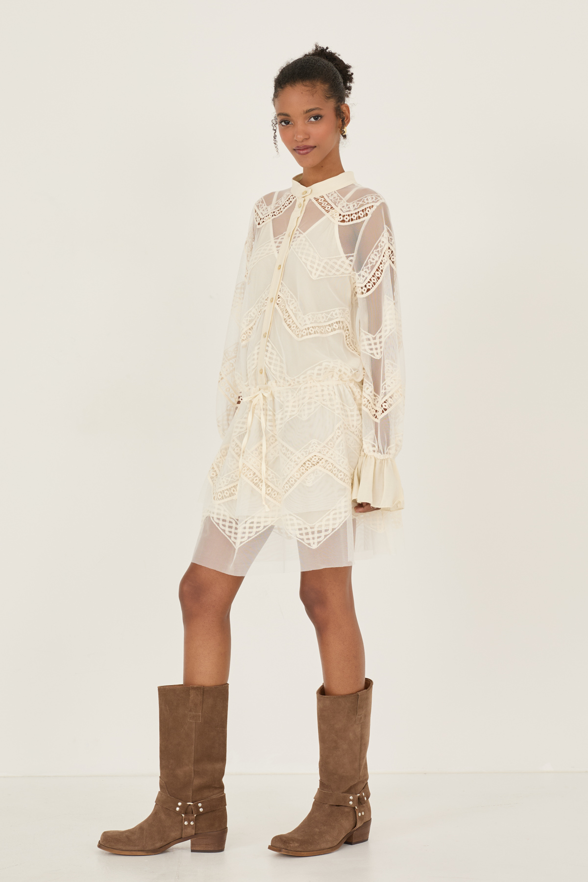 Vestito corto con inserti macramè